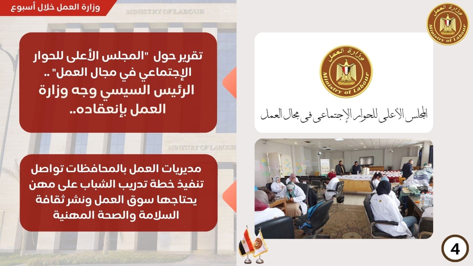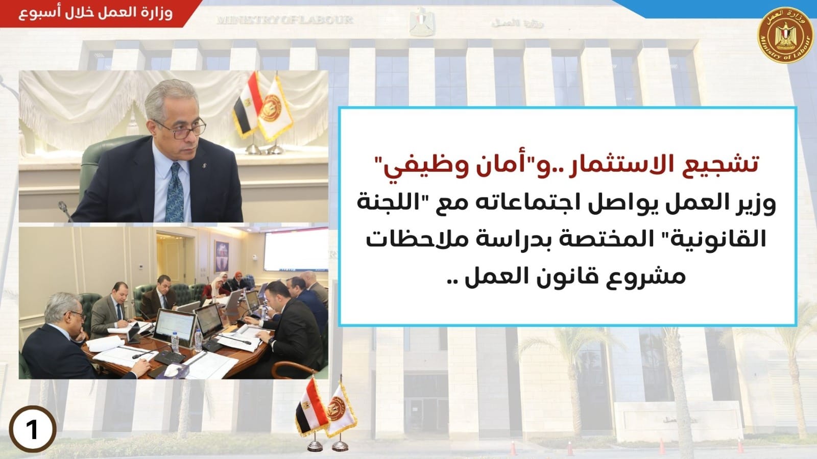 حصاد في إسبوع .. وزارة العمل تستكمل مناقشة الملاحظات على بنود "مشروع قانون العمل"