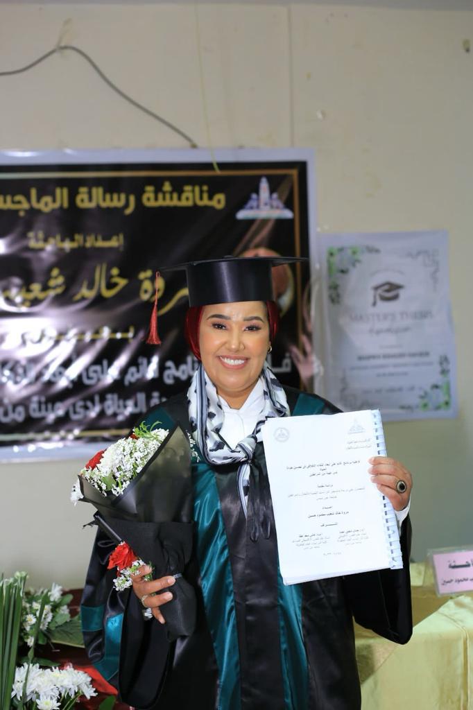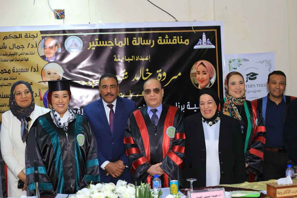 حصلت الباحثة مروة خالد شعيب على درجة الماجستير بتقدير امتياز مع مرتبة الشرف من جامعة عين شمس فى الرسالة المقدمة منها لكلية الدراسات العليا للطفولة من قسم الدراسات النفسية للأطفال تحت عنوان " فاعلية برنامج قائم على أبعاد الذكاء الاخلاقى فى تحسين جودة الحياة لدى عينة من المراهقين "