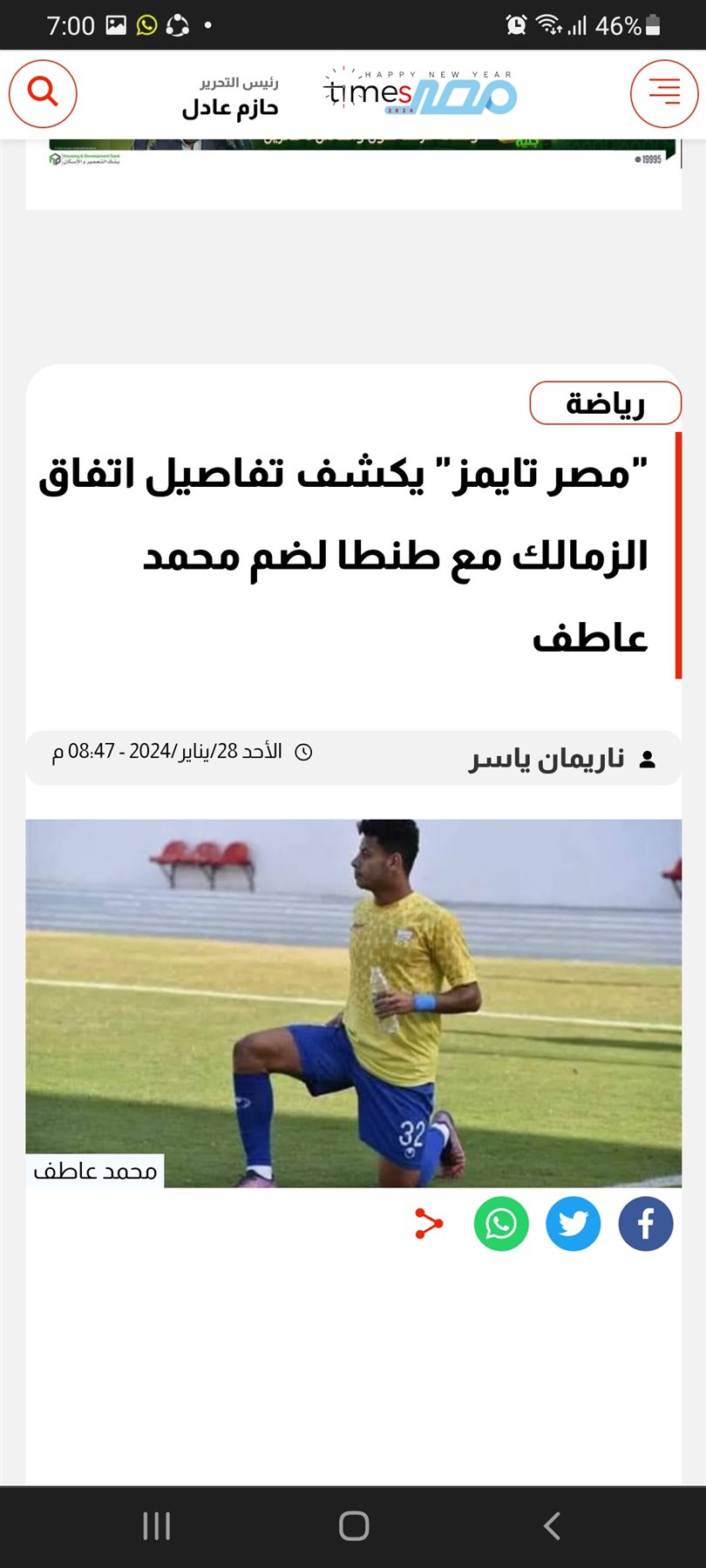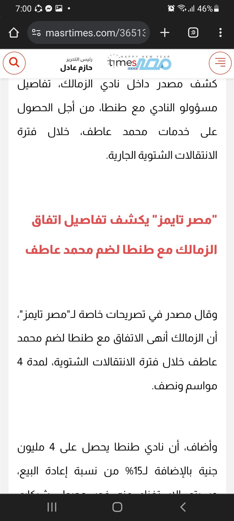 تأكيدًا لـ"مصر تايمز" نادي طنطا يعلن انتقال محمد عاطف لنادي الزمالك رسميًا