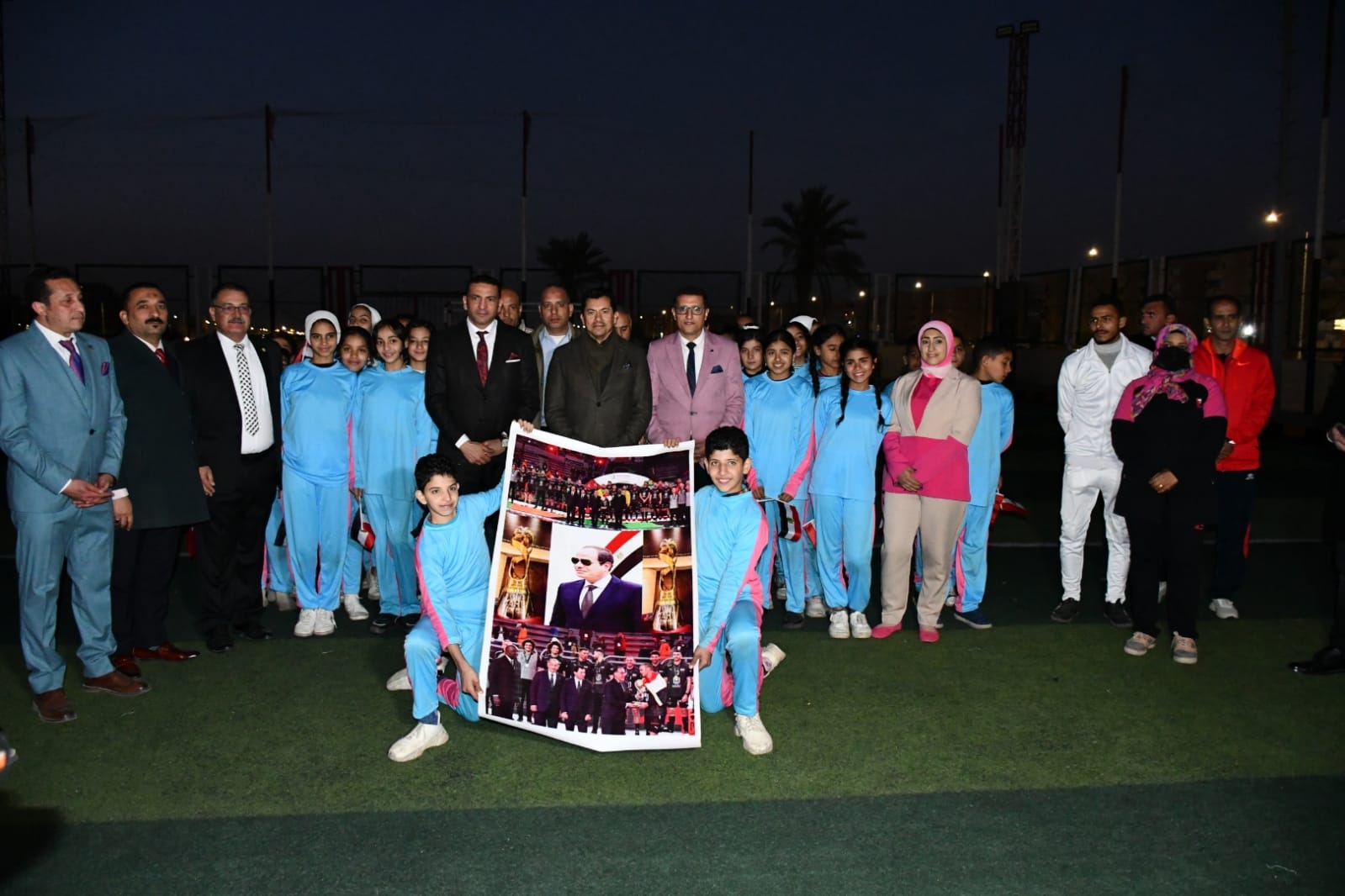 قام وزير الرياضة بزيارة مركز شباب الحرية وافتتاح ملعب خماسي للنجيل الصناعي وشاهد عليه عرض رياضي للنشء.