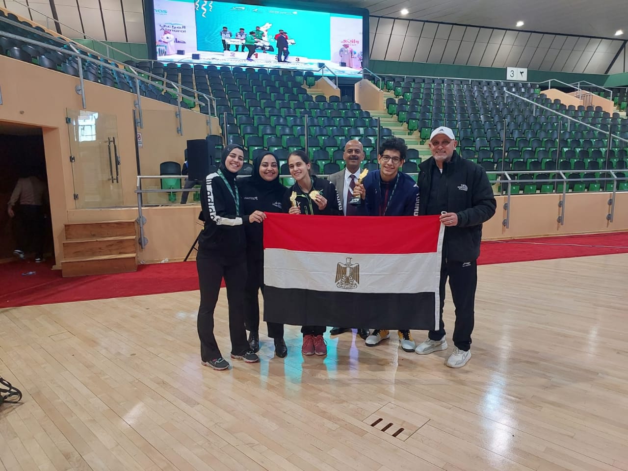 وحصد الفراعنة على 3 ذهبيات من نصيب نور يسري في فردي السيدات بعد فوزها على الأردنية دموع عمرو، ومحمود محمد حسن في منافسات فردي الشباب عقب فوزه على السوري حسام الراعي، أما الذهبية الثالثة فكانت من نصيب الزوجي المكون من محمود محمد حسن وعمر محمد رفعت.