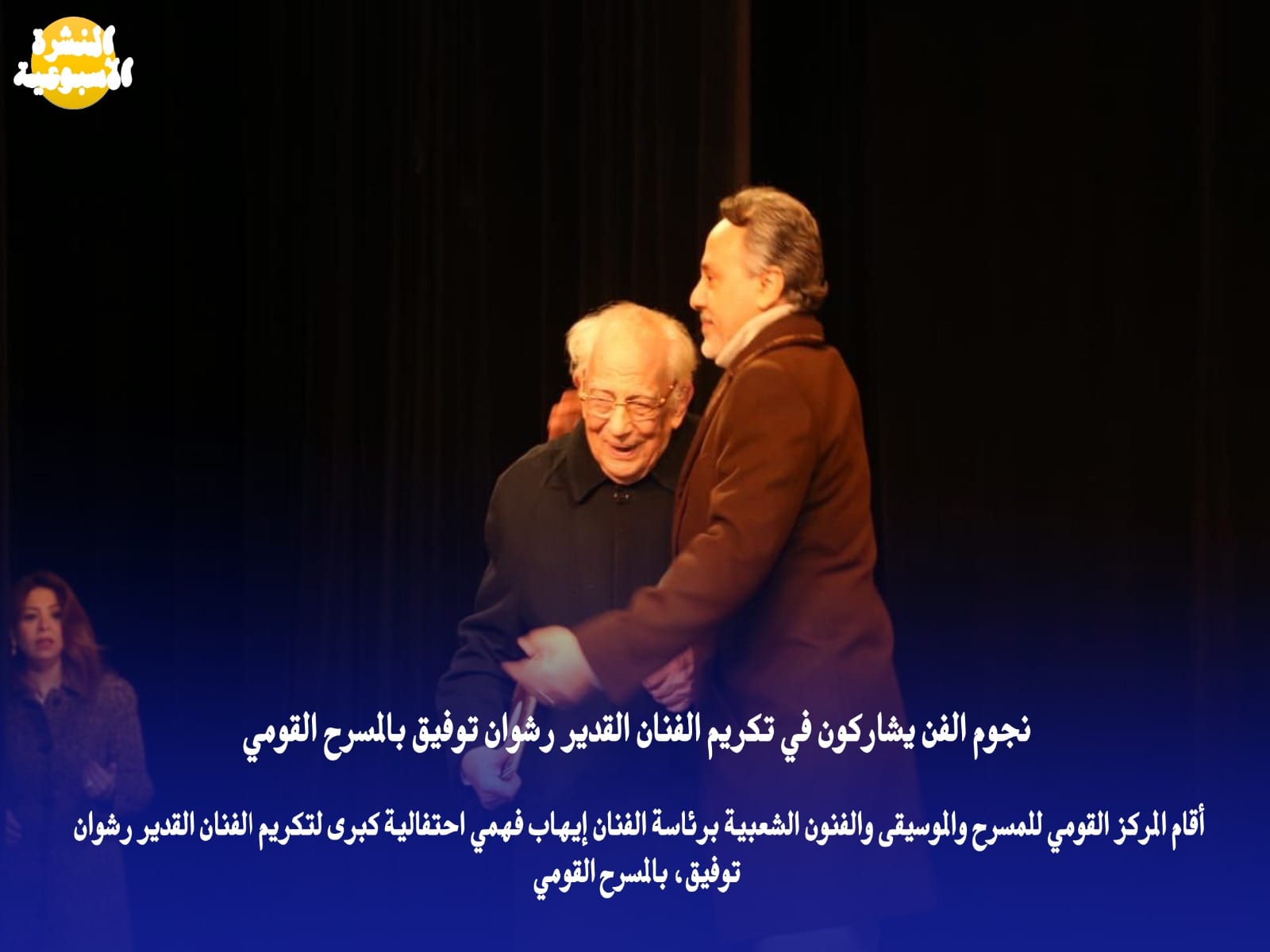 أقام المركز القومي للمسرح والموسيقى والفنون الشعبية برئاسة الفنان إيهاب فهمي احتفالية كبرى لتكريم الفنان القدير رشوان توفيق، بالمسرح القومي.