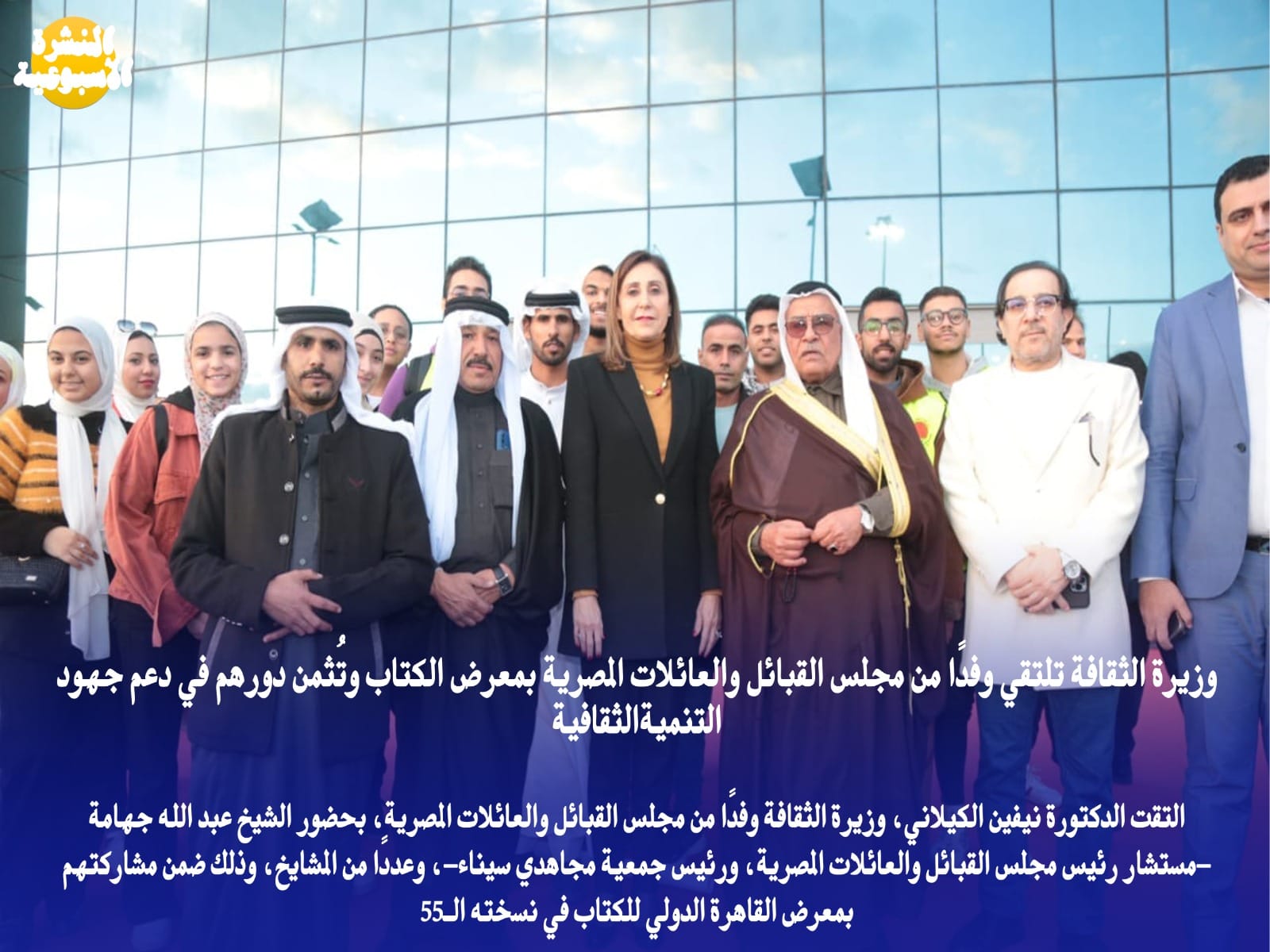 التقت الدكتورة نيفين الكيلاني، وزيرة الثقافة وفدًا من مجلس القبائل والعائلات المصرية، بحضور الشيخ عبد الله جهامة -مستشار رئيس مجلس القبائل والعائلات المصرية، ورئيس جمعية مجاهدي سيناء-، وعددًا من المشايخ، وذلك ضمن مشاركتهم بمعرض القاهرة الدولي للكتاب في نسخته الـ55.