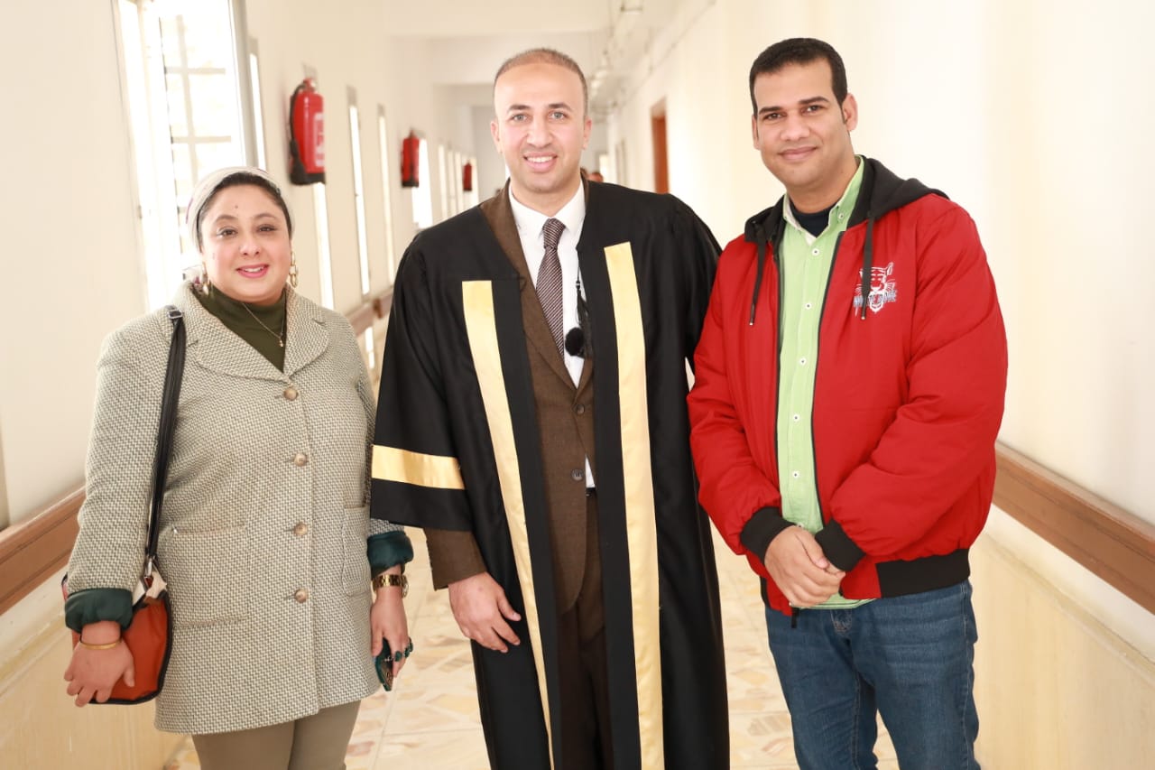 حضر المناقشة الأستاذ الدكتور رضا عبد الواجد أمين، عميد الكلية، وشيوخ القضاة المستشار محمد رضا شوكت رئيس محكمة استئناف القاهرة عضو مجلس القضاء الأعلى، والمستشار محمد شيرين فهمي رئيس محكمة أمن الدولة العليا والمستشار أشرف عيسى رئيس محكمة جنايات القاهرة والمستشار محروس عبد الهادي رئيس محكمة جنايات القاهرة والمستشار عبد الحكيم عبد الحفيظ رئيس محكمة جنايات الفيوم والمستشار بهاء أبو محمد رئيس محكمة جنح مستأنف دمنهور، وقيادات الداخلية على رأسهم اللواء ماجد نوح مساعد وزير الداخلية لقطاع الأمن المركزي سابقا،وأعضاء هيئة التدريس الاستاذ الدكتور غانم السعيد عميد كليتي الإعلام واللغة العربية سابقا والاستاذ الدكتور محمود الصاوي وكيل كليتي الإعلام والدعوة الإسلامية سابقا، والاستاذ الدكتور محمد عبد الحميد استاذ الصحافة المساعد بالكلية والمدرسين بالكلية كلا من الدكاترة، محمود عاطف شهاب ومحمد الورداني وحسام شاكر وسامح غازي ومحمد البحراوي و محمود سلامة ومحمد طلعت وجمال ابو جبل واحمد عرفات، والاستاذ الدكتور أسامة رسلان الاستاذ بكلية اللغات والترجمة بالأزهر، والدكتورة يسرا شعبان مدرس القانون بحقوق عين شمس، والدكتور مهندس أحمد السيد جبل واللواء محمد عاطف عليوة، والدكتور جمال أبو ضيف استاذ القانون الجنائي والدكتور سمير الششتاوي والمستشار القانوني ممدوح الليثي، والمحاسب محمد جمال جبل، و الاستاذ مهند عبد الرحمن صالح.