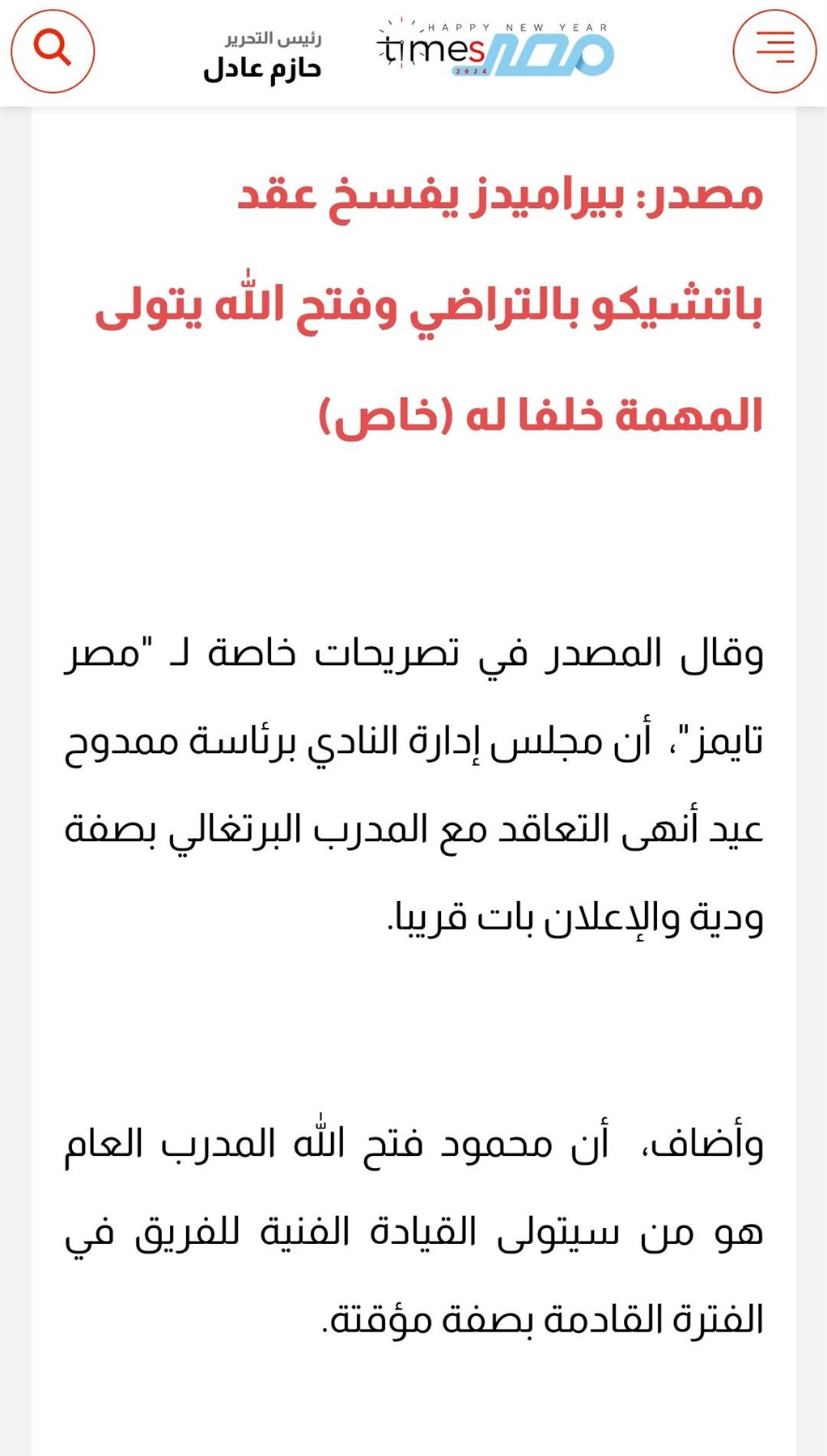 جدير بالذكر، قال مصدر في تصريحات خاصة لـ "مصر تايمز"، أن مجلس إدارة النادي برئاسة ممدوح عيد، أنهى التعاقد مع المدرب البرتغالي بصفة ودية والإعلان بات قريبا.