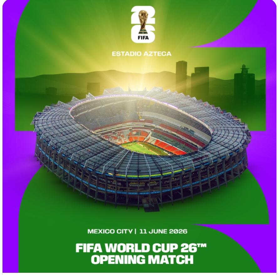 ويقام لقاء الافتتاح للمرة الثالثة تاريخيا على الملعب التاريخي "أزتيكا" والذي يتسع لأكثر من 105 ألف متفرج في الحادي عشر من يونيو، بالعاصمة مكسيكو سيتي بالمكسيك، وفق ما أعلنه فيفا.
