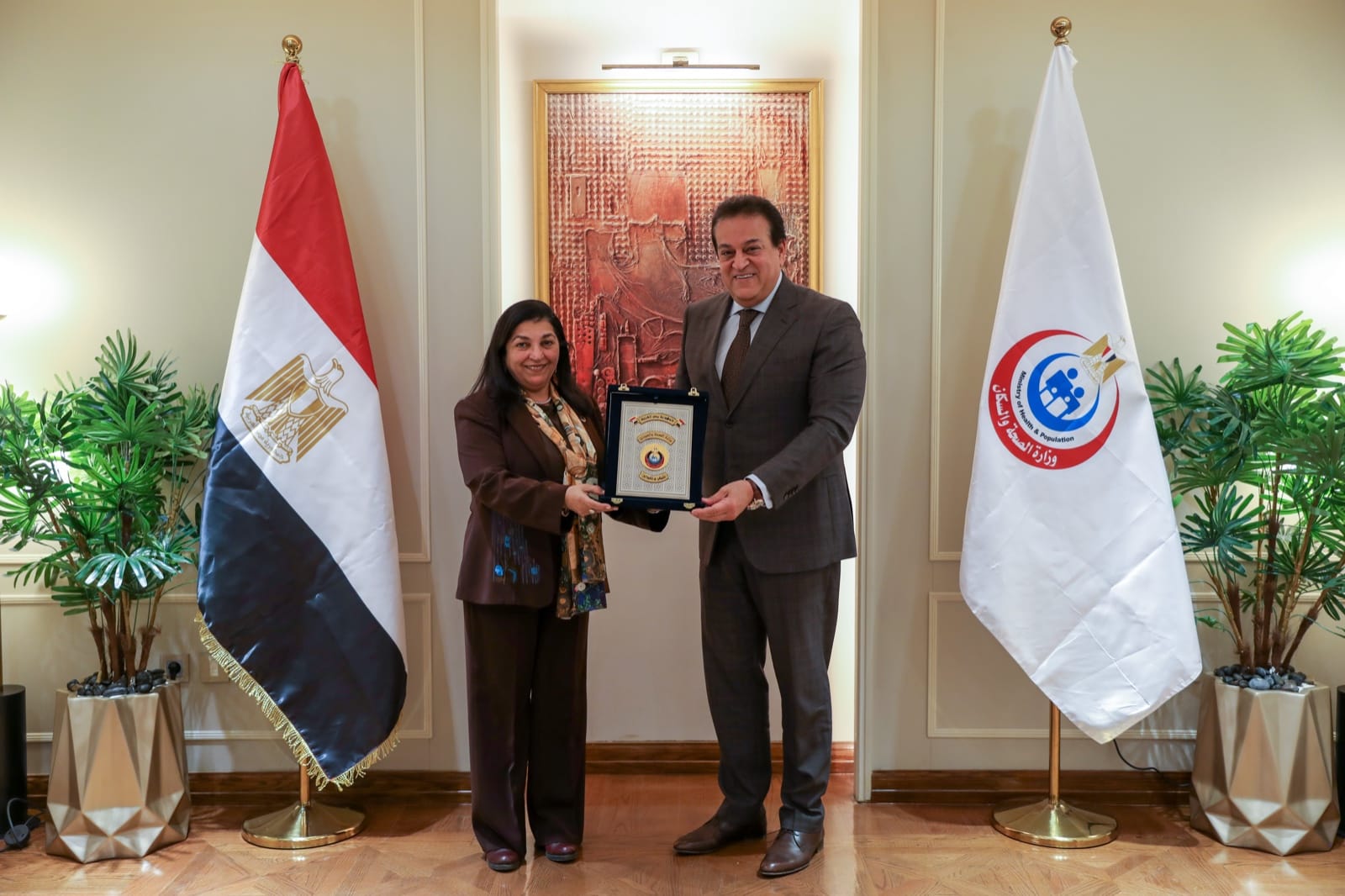 وقال "عبدالغفار"، إن الوزير قام بإهداء الدكتورة نعيمة القصير، درع الوزارة تقديرا لها على جهودها التي بذلتها مع وزارة الصحة والسكان في تقديم أفضل خدمة طبية للمواطنين في إطار منظومة صحية متكاملة تعمل وفقا للمعايير العالمية.