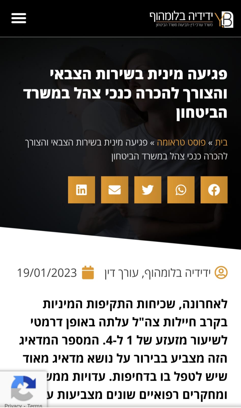 و أوضح موقع yedlaw أنه في الأونة الأخيرة ارتفعت حالات الاعتداء الجنسي في الجيش الاسرائيلي بشكل كبير إلى معدل صادم قدره 1 من كل 4 ويشير هذا الرقم المثير للقلق بوضوح إلى قضية مثيرة وتحتاج إلى معالجة عاجلة ، فقد ارتفع عدد الحالات المبلغ عنها بنسبة 24% ، وتعد نصف الضحايا من النساء أغلبهم من الجنزد الشباب تحت سن 35 عاما، وعادة ما يحدث الاعتداء الجنسي أثناء العمليات العسكرية مثل التدريبات القتالية و تحدث حالة واحدة من كل أربع حالات بعد أداء واجب الحراسة أو أثناء قضاء أجازة في منطقة مدنية غير عسكرية ، وبعض الضحايا لا يبلغون عن اعتداءاتهم خوفا من العواقب.