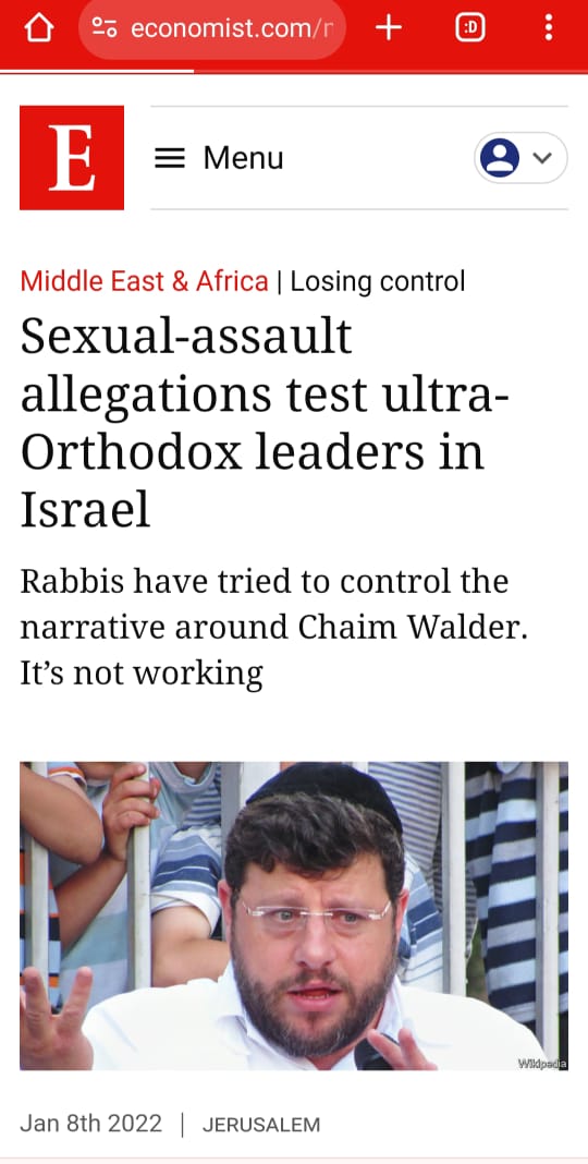 الكارثة كانت تكمن في المعالج حاييم والدر الذي يعيش في مدينة بني براك بضواحي تل أبيب، وقد وجه له الاتهام في 22 شهادة من الذكور والاناث وأكدوا على تعرضهم للاعتداء الجنسي ، وقد رفض جلسة التحقيق معه ولم يحضر ، ورئيس المحكمة شموئيل إلياهو قال حينها أن المحكمة استمعت للشهود الذين شهدوا على زنا والدر مع العديد من النساء المتزوجات بالاضافة إلى انه كان هناك أدلة على ذلك من تسجيلات لافعال والدر المشينة وسمع أيضا اعترفاته في هذه التسجيلات ، وبعد عدة أسابيع تحديدا في 27 ديسمبر 2021 أقدم والدر على الانتحار مطلقا الرصاص على نفسه في مقبرة بتاح تكفا وكانت جثته بجوار قبر ابنه الذي توفي قبل سنوات بسبب مرض السرطان .