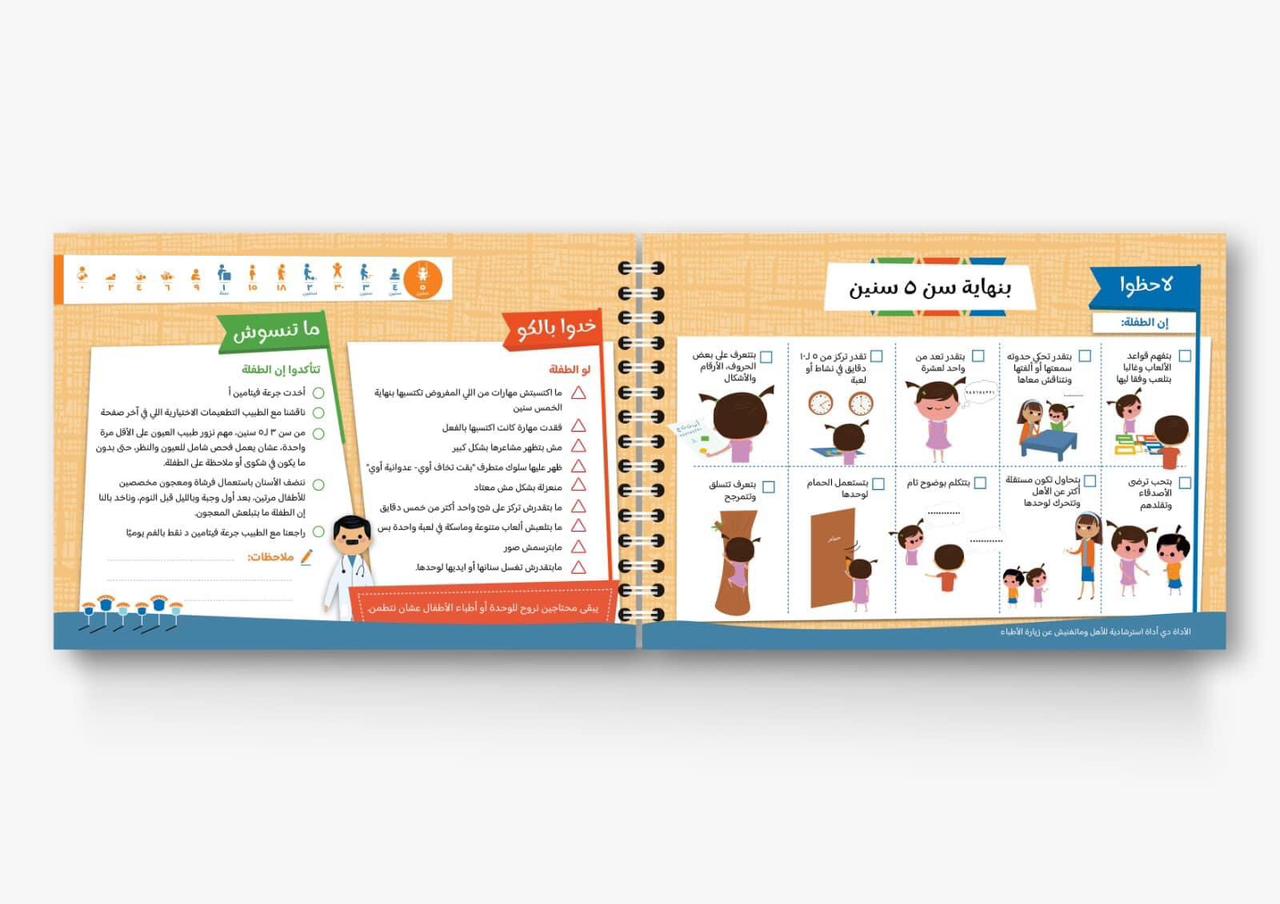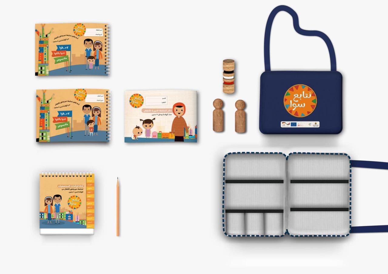 وتحتوى المجموعة على حقيبة بها أدوات متابعة الأطفال لاستخدام الرائدات ، وكتيبات المتابعة لاستخدام الآباء والأمهات، بالإضافة إلى مجموعة لاستخدام الحضانات، وغيرها لجلسات التوعية المجتمعية، كما يوجد 12 فيديو شارح لكل مرحلة عمرية منذ الولادة حتى سن الخامسة، كل هذه المجموعة تتيح الاستخدام والاستفادة من الأدوات بأشكال مختلفة وفي كل البيئات التي يتواجد بها الأطفال في تلك الفئة العمرية.