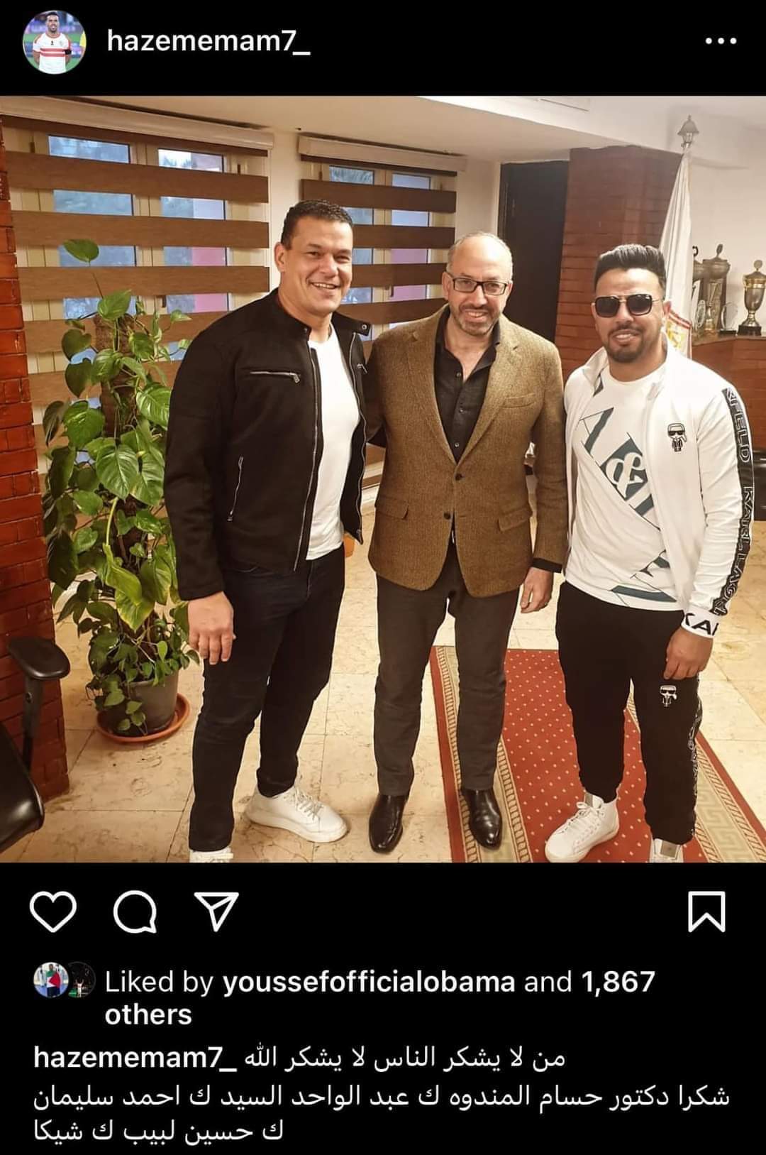 ونشر حازم إمام على صفحته الرسمية على"إنستجرام" صورة تجمعه بكلا من حسام المندوه، وعبد الواحد السيد ليعلن فيها إنتهاء الأزمة.