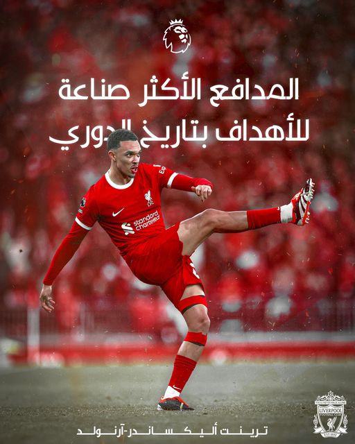 أرنولد "فتى الريدز الذهبي" يتصدر المدافعين الأكثر صناعة للأهداف في البريميرليج
