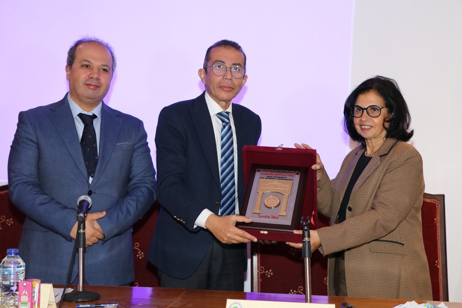 • خالد الطوخى رئيس مجلس الأمناء يكرم الوزيرة ياسمين فؤاد ويمنحها درع الجامعة