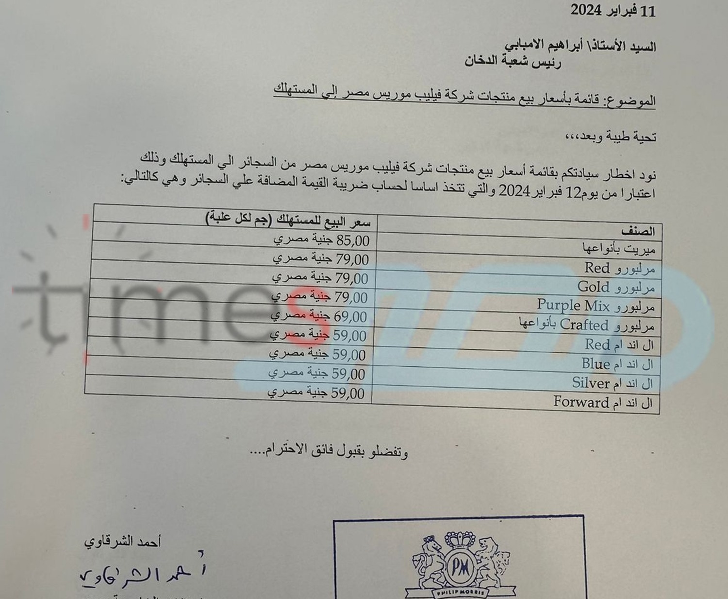 وفي جدير بالذكر ، إنه أعلنت شركة فيليب موريس مصر، إنها رفعت أسعار السجائر الأجنبية، بنسبة 13% ما يعادل بين 11 وحتى 12 جنيها العبوة الواحدة، مع تطبيق الزيادة الجديدة ابتداءا من اليوم الاثنين، لتكون أولى زيادات الشركة في 2024.