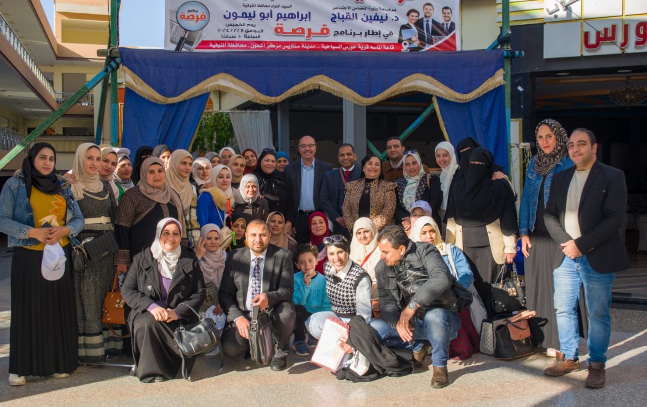 نظم برنامج فرصة للتمكين الاقتصادي التابع لوزارة التضامن الاجتماعي ملتقى توظيفي موسع بمحافظة المنوفية، حيث افتتح فعاليات الملتقى محمد جمعة مدير مديرية التضامن الاجتماعي بالمنوفية، والدكتور محمد سامي مدير مكون التدريب والتوظيف ببرنامج فرصة والقائمين على البرنامج،وعدد من قيادات العمل بالمديرية، وذلك بهدف توفير فرص عمل للشباب بما يسهم في زيادة معدل التشغيل و خفض البطالة بين مستفيدي برنامج الدعم النقدي "تكافل وكرامة" .