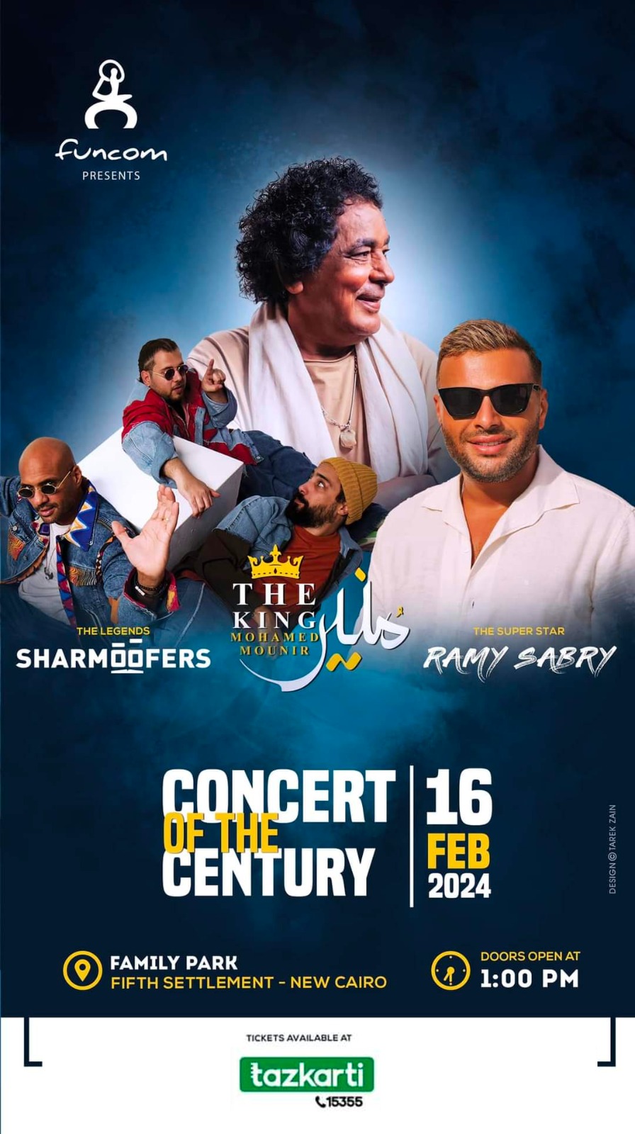 أعلنت شركة تذكرتي عن طرح تذاكر حفلة القرن للكينج محمد منير وشارموفرز ورامي صبري يوم الجمعه القادم 16 فبراير في فاميلي بارك بالتجمع الخامس.