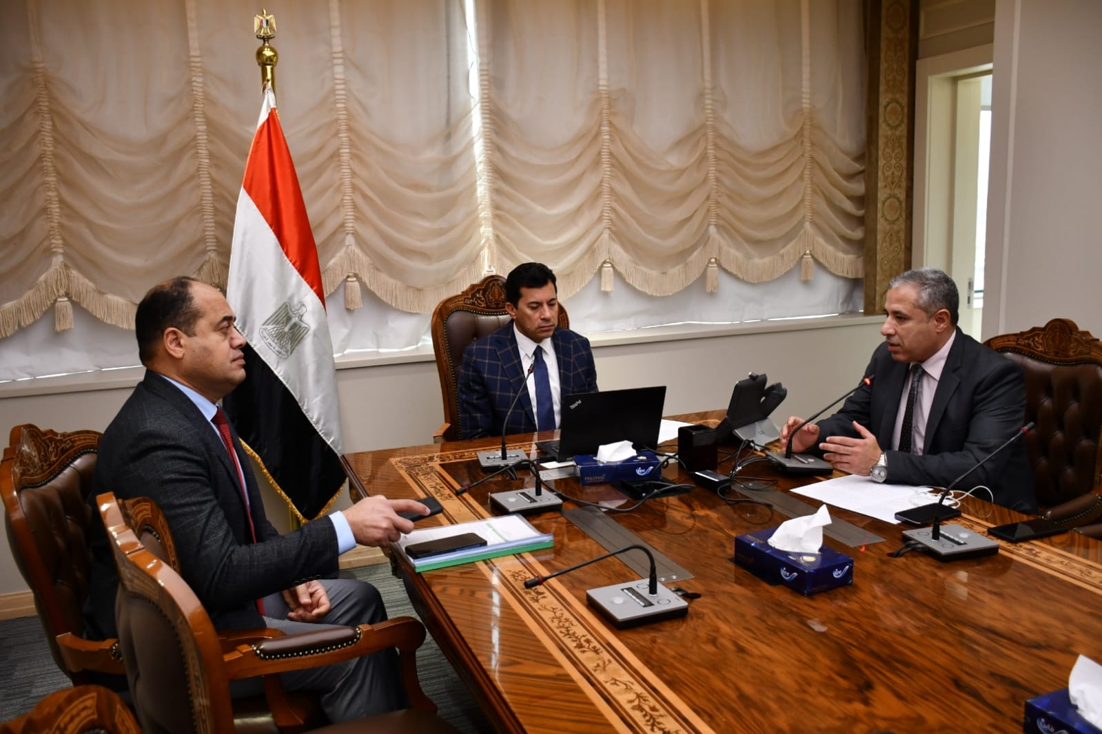 أفتتح أشرف صبحي وزير الشباب والرياضة، عبر تقنية الفيديو كونفرانس، فعاليات اللقاء الحواري الثاني ضمن سلسلة لقاءات حوارية لمواجهة وإدارة الأزمات التي تواجه قطاعي الشباب والرياضة، تحت شعار "من أجل الوعي نلتقي"، التي تقام تحت رعاية الدكتور أشرف صبحي وزير الشباب والرياضة، والتي تنظمه الإدارة المركزية للإدارة الاستراتيجية - الإدارة العامة للأزمات والكوارث والحد من المخاطر، بمحافظة اسيوط.