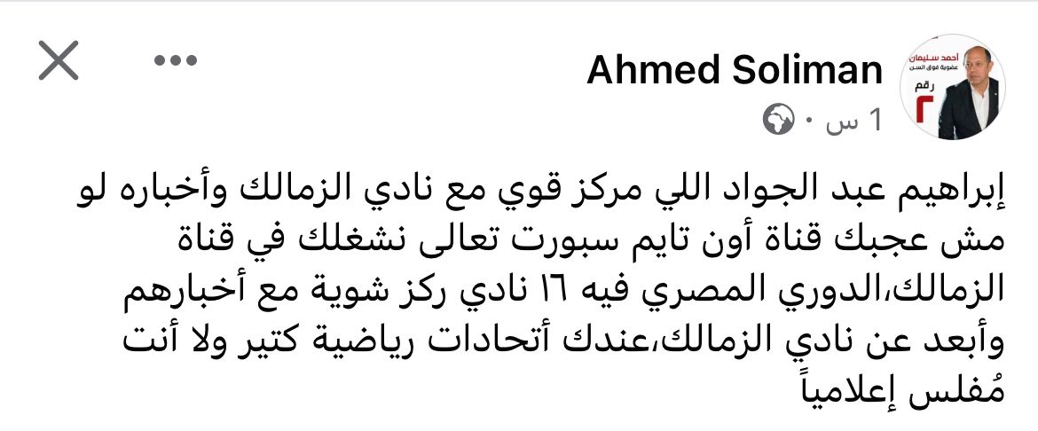 وانتقد أحمد سليمان، إبراهيم عبد الجواد عبر حسابه الشخصي علي فيسبوك قائلاً: " إبراهيم عبد الجواد اللي مركز أوي مع نادي الزمالك وأخباره ، لو مش عاجبك قناة أون تايم سبورت تعالي نشغلك في قناة الزمالك ، الدوري المصري في 16 نادي ركز شوية مع أخبارهم وإبعد عن نادي الزمالك ، عندك إتحادات رياضية كتير ولا إنت مفلس إعلامياً.