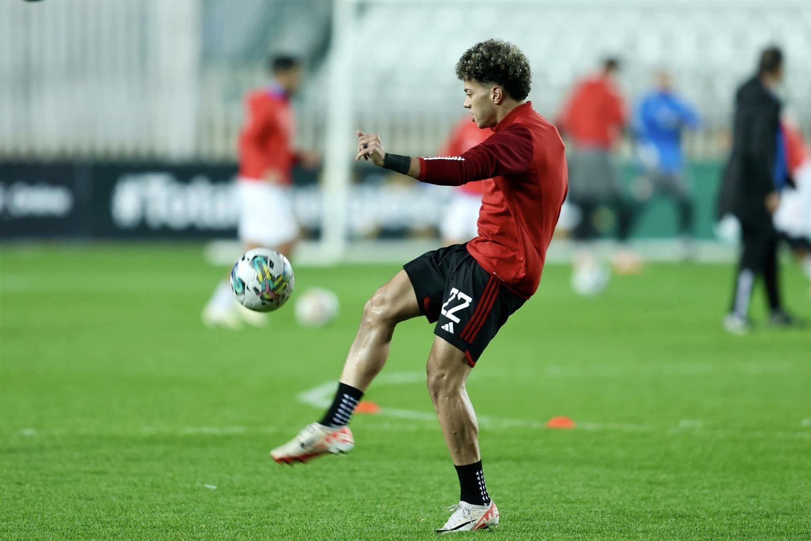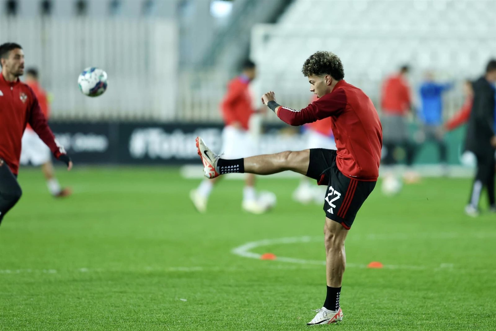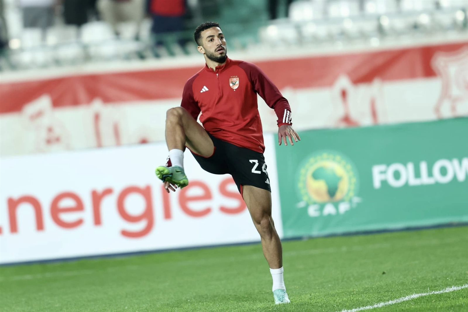 الأهلي يجري عمليات الإحماء قبل انطلاق صافرة لقاء بلوزداد بدوري أبطال إفريقيا