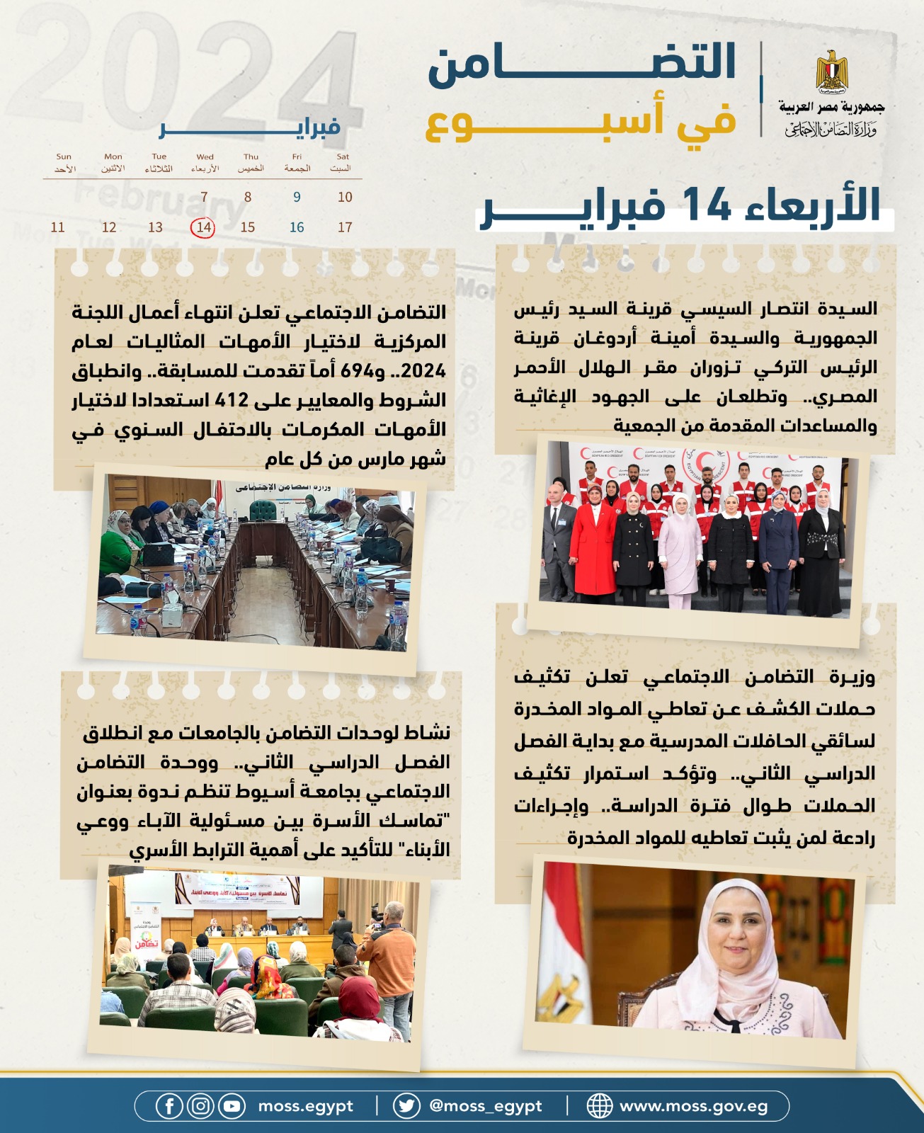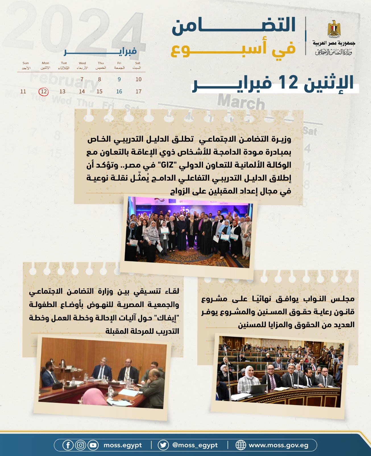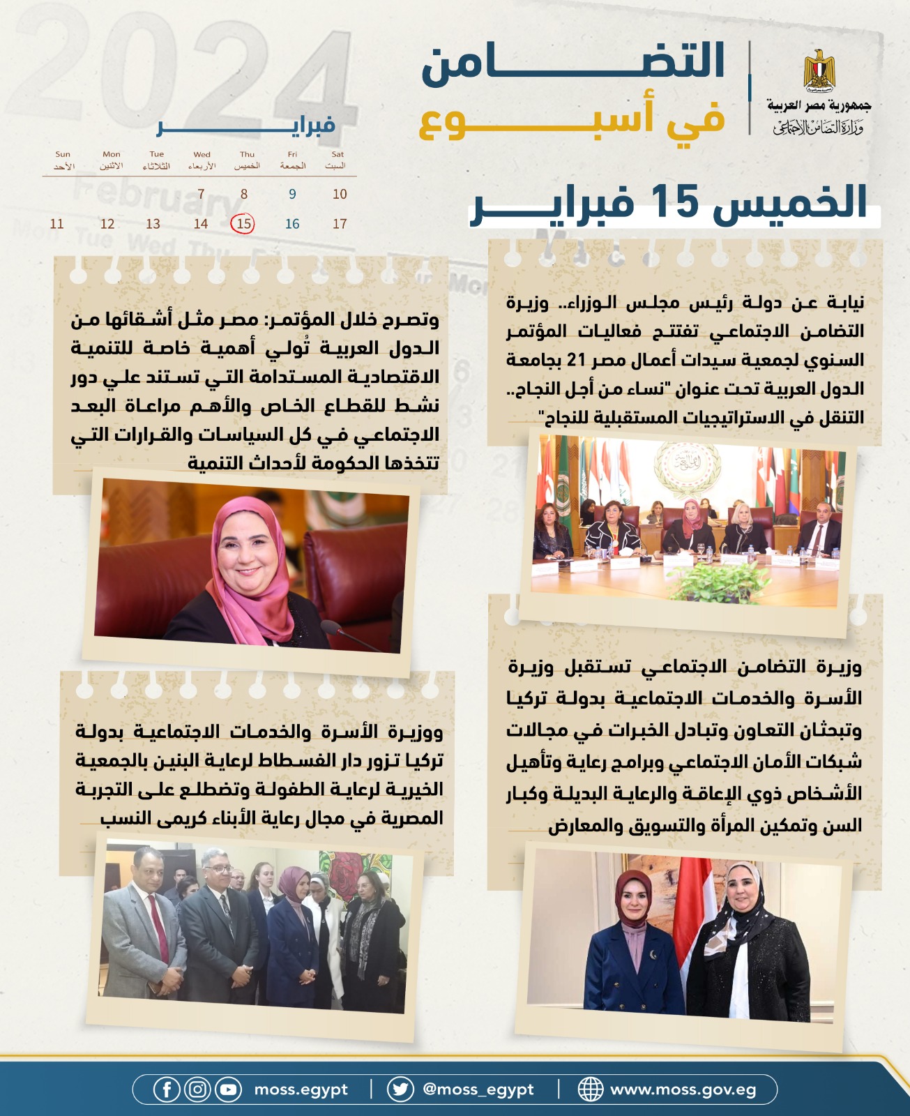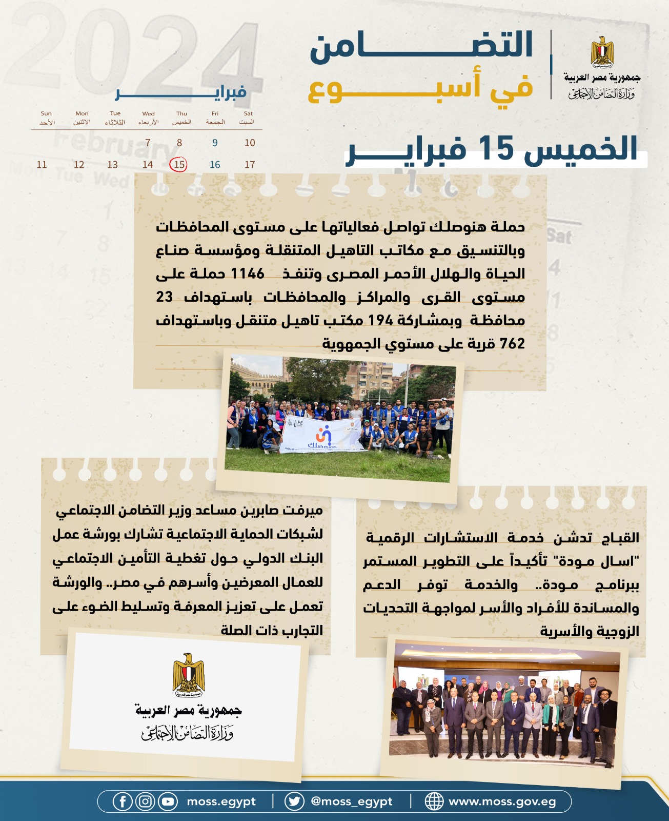 الحصاد الأسبوعي لوازرة التضامن في الفترة من 9 فبراير إلى 15 فبراير 2024
