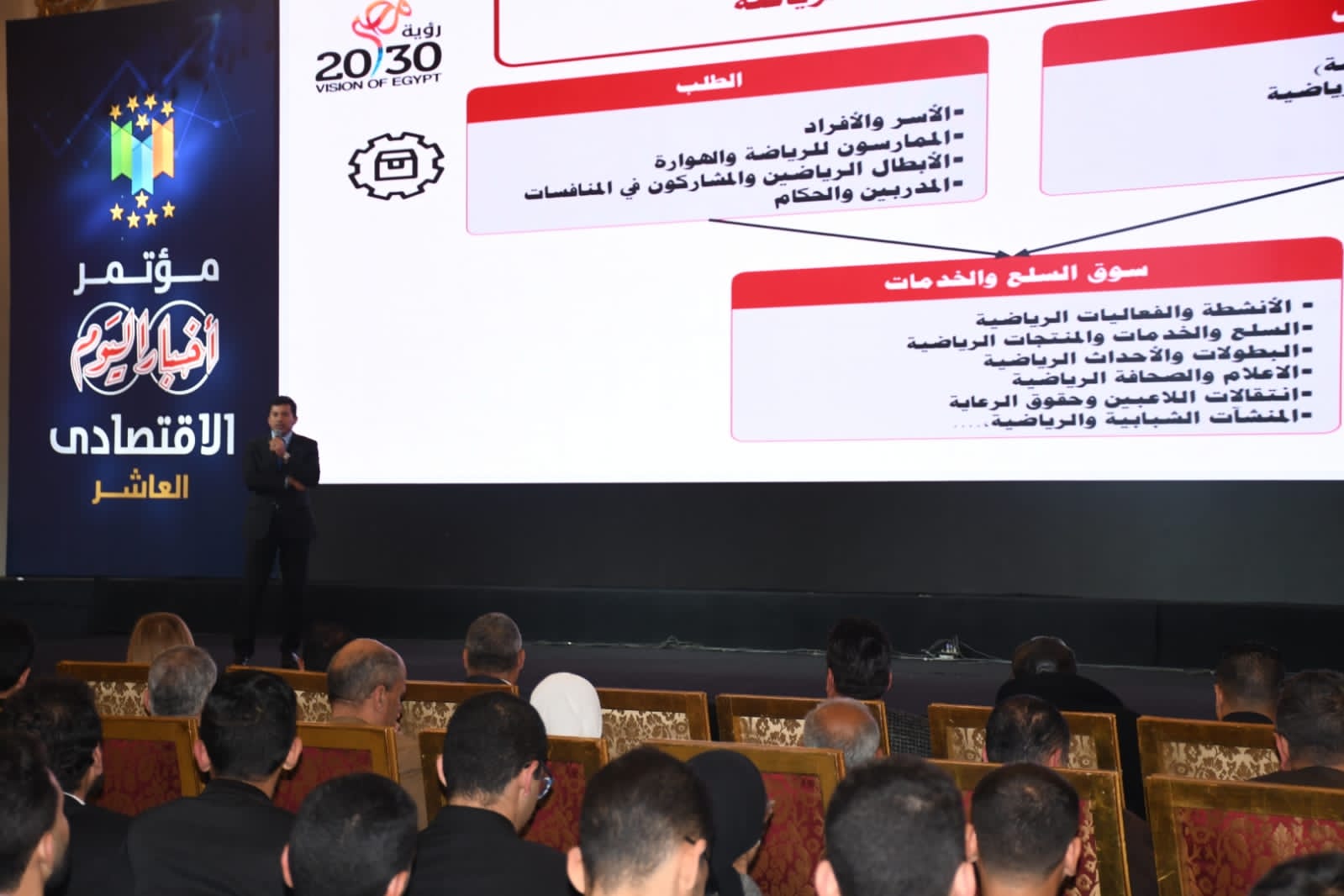 استعرض الدكتور أشرف صبحي وزير الشباب والرياضة، اليوم، خلال جلسة نقاشية بعنوان " الرياضة المصرية والإقتصاد الوطني بين الواقع والمأمول" بفعاليات مؤتمر أخبار اليوم الإقتصادي العاشر تحت عنوان "الإقتصاد المصري تحديات وأولويات"، تحت رعاية السيد رئيس مجلس الوزراء، وحضور عدد من السادة الوزراء، المستثمرين ومجتمع الأعمال والخبراء والأكاديميين، وحضور الكاتب الصحفي أحمد جلال رئيس مجلس إدارة مؤسسة أخبار اليوم، ولفيف من قيادات الوزارة، وشباب الجامعات المصرية، وشباب وحدة الشمول الرقمي.