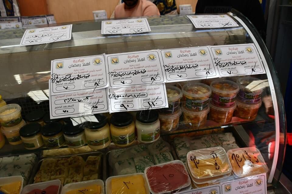 وتضمن المعرض جميع السلع الغذائية من سكر، أرز، مكرونة، زيت، سمن، كافة أنواع الجبن والألبان، البقوليات، والخضروات والفاكهة، وملابس، ومستلزمات شهر رمضان من بلح، جوز هند، قمر الدين، الفاكهة المجففة "تين، مشمش، خروب"، سوبيا، إضافة إلى اللحوم.