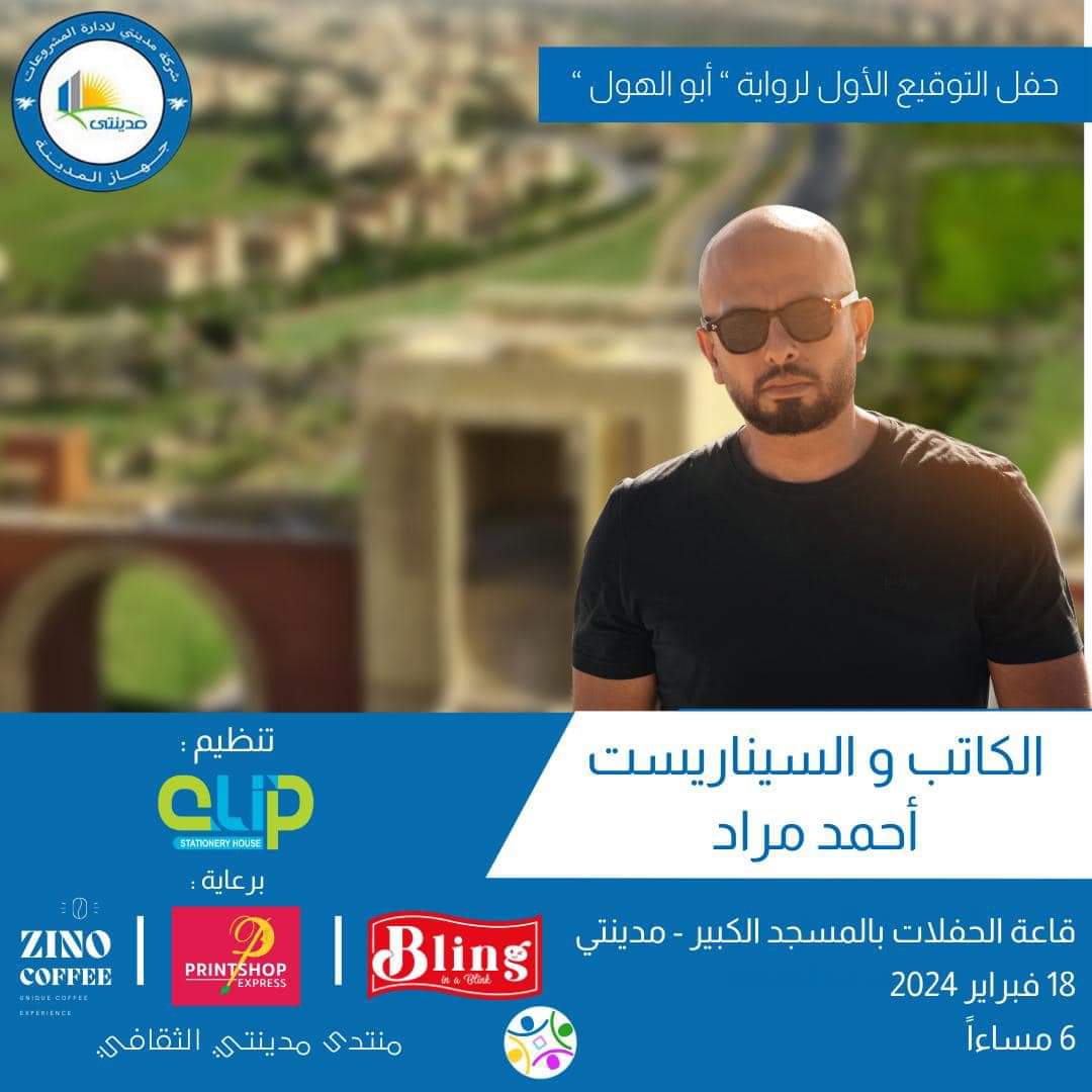 يستضيف منتدى مدينتي الثقافي مساء اليوم الاحد 18 فبراير حفل التوقيع الأول لرواية "أبو الهول" للكاتب والسيناريست الكبير أحمد مراد، بالتعاون مع مكتبة كليب - الرحاب .