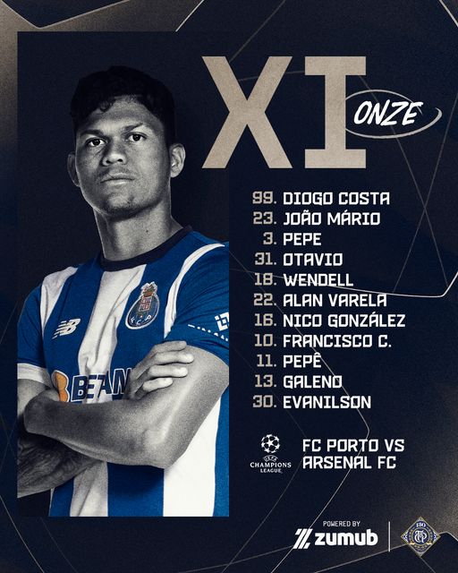 أعلن مايكل أرتيتا المدير الفني لفريق أرسنال الإنجليزي التشكيل الرسمي الي سيخوض به لقاء الليلة أمام بورتو البرتغالي في ذهاب دور الـ 16 لبطولة دوري أبطال أوروبا موسم 2023-2024.