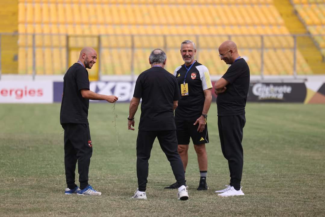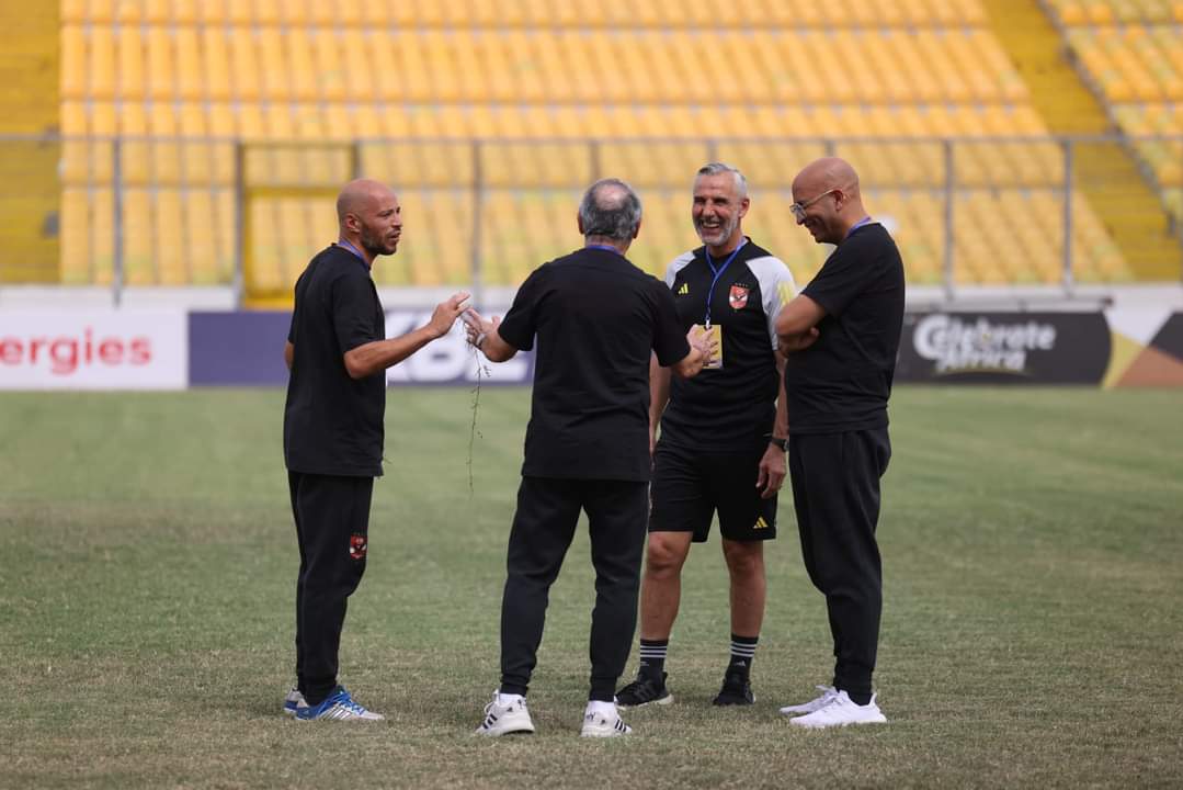 الجهاز الفني للأهلي يعاين أرضية الملعب قبل مباراة ميدياما بدوري أبطال أفريقيا (صور)