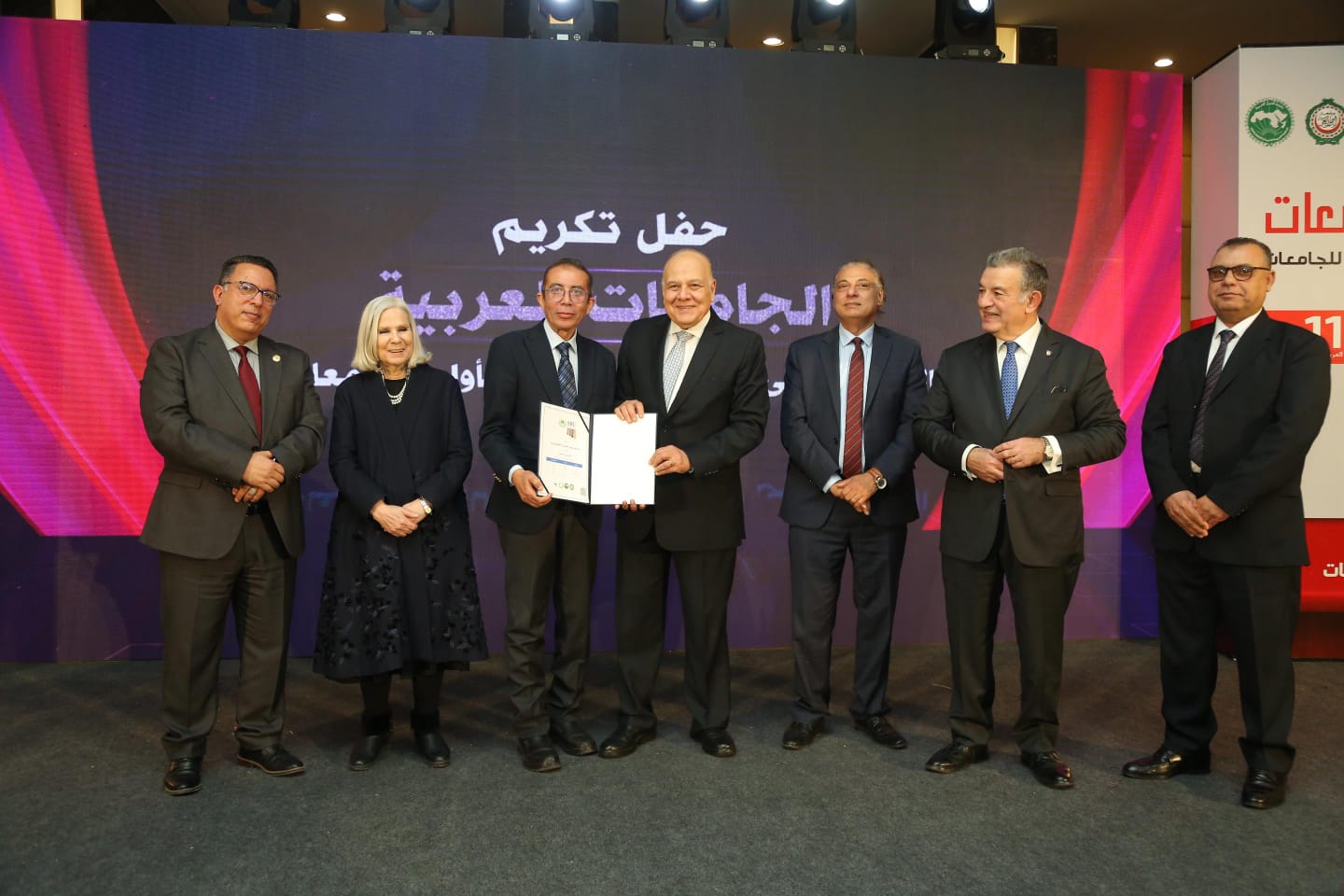 رئيس جامعة مصر للعلوم والتكنولوجيا يتسلم شهادة نجاح الجامعة في التصنيف العربي للجامعات