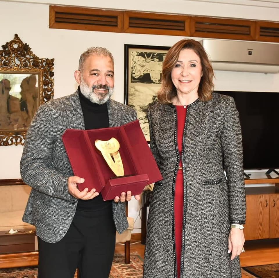 أهدت له الدكتورة نيفين الكيلاني، وزيرة الثقافة، درع وزارة الثقافة، وتمنت له التوفيق والنجاح في المرحلة المُقبلة.