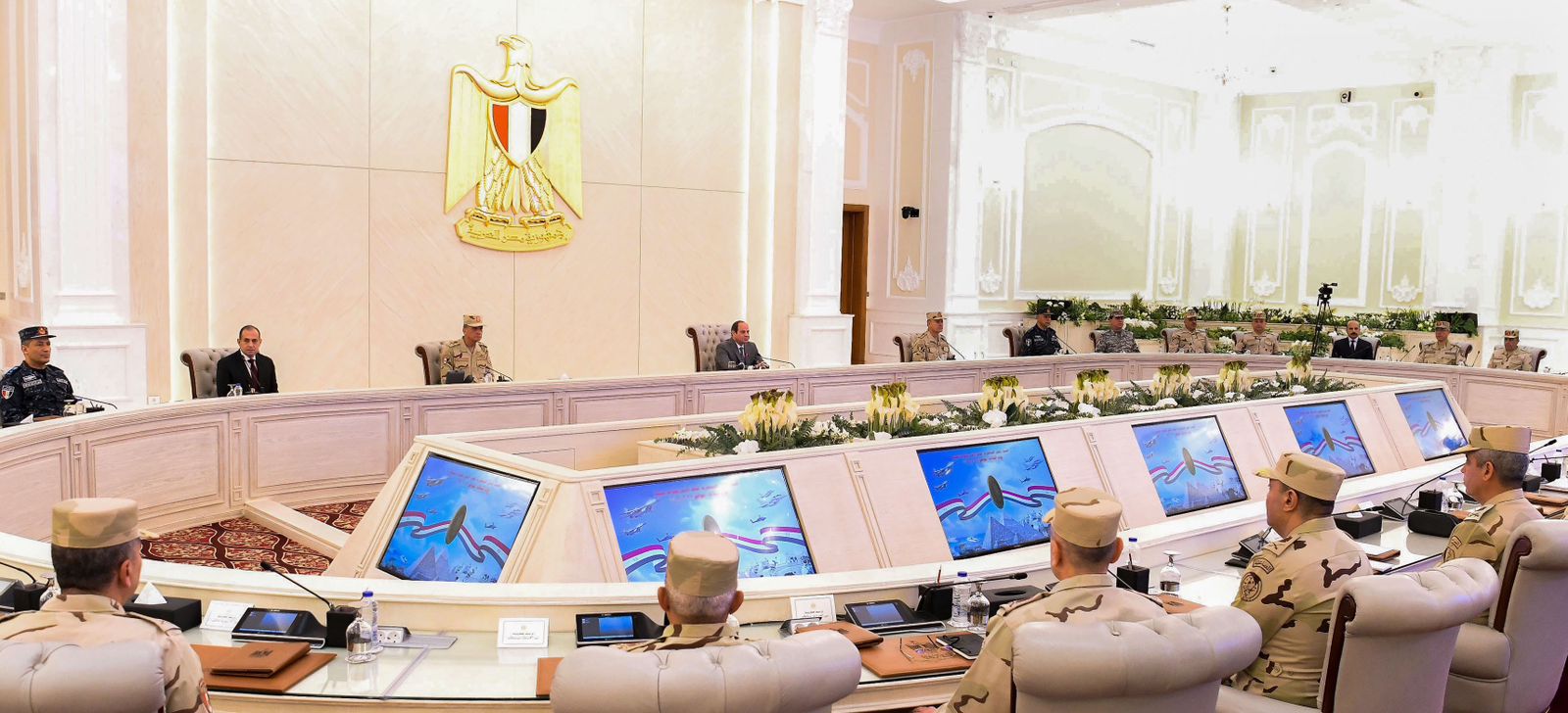 جاء ذلك خلال اجتماع الرئيس السيسي، رئيس الجمهورية القائد الأعلى للقوات المسلحة مع الفريق أول محمد ذكي القائد العام للقوات المسلحة وزير الدفاع والإنتاج الحربي، والفريق أسامة عسكر رئيس أركان حرب القوات المسلحة، وقادة الأفرع الرئيسية وعدد من قادة القوات المسلحة، وذلك بمقر القيادة الاستراتيجية بالعاصمة الإدارية الجديدة.