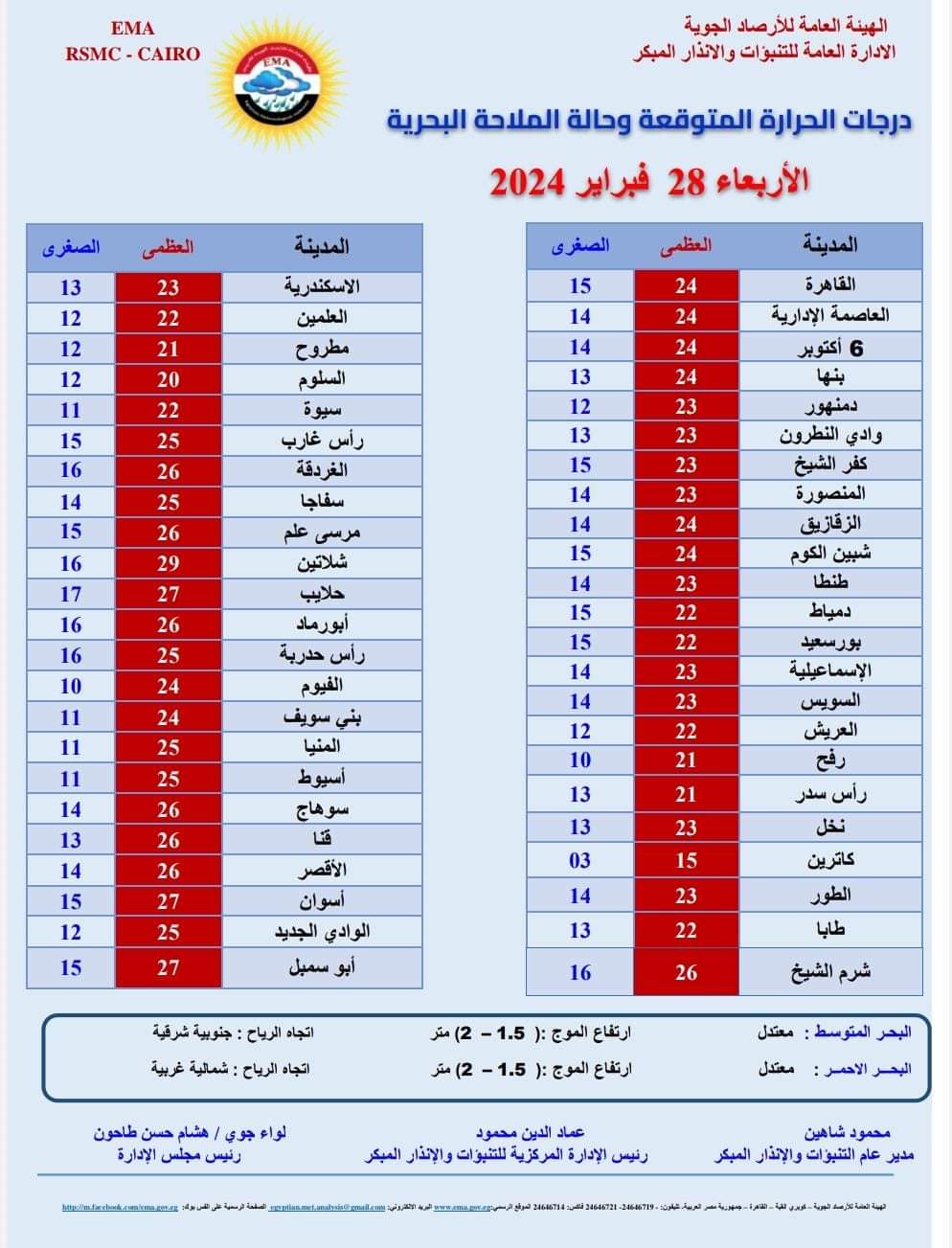 وحذرت الهيئة العامة للأرصاد الجوية من نشاط للرياح على السواحل الشمالية الشرقية ووسط وجنوب سيناء تزيد من الشعور ببرودة الطقس.