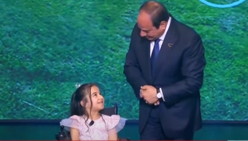السيسي يقبل يد الطفله روضه.. ويطلب منها الدعاء باصطحابه إلى الجنة يوم القيامه