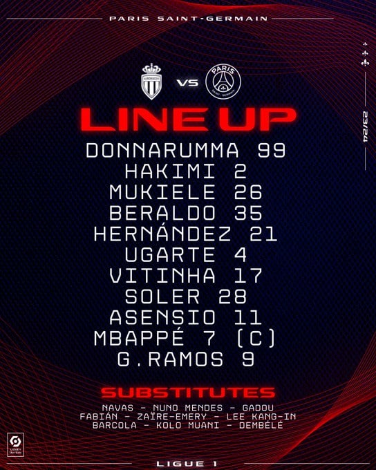 التشكيل الرسمي لباريس سان جيرمان