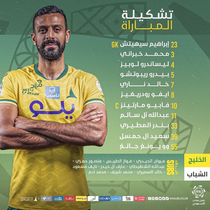 تعرف علي موقف محمد شريف..تشكيل الخليج ضد الشباب في الدوري السعودي