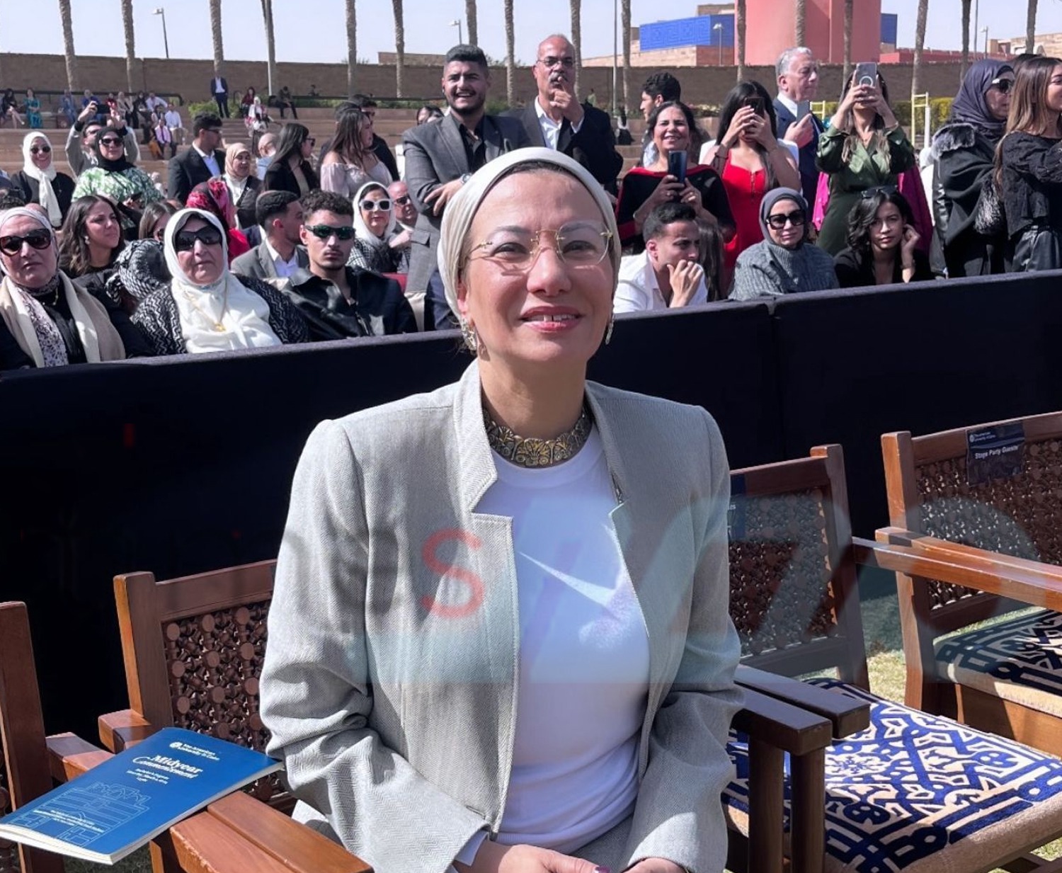 كما حرصت الدكتورة ياسمين فؤاد وزيرة البيئة على حضور الاحتفال لتخرج نجلها في نفس الدفعة