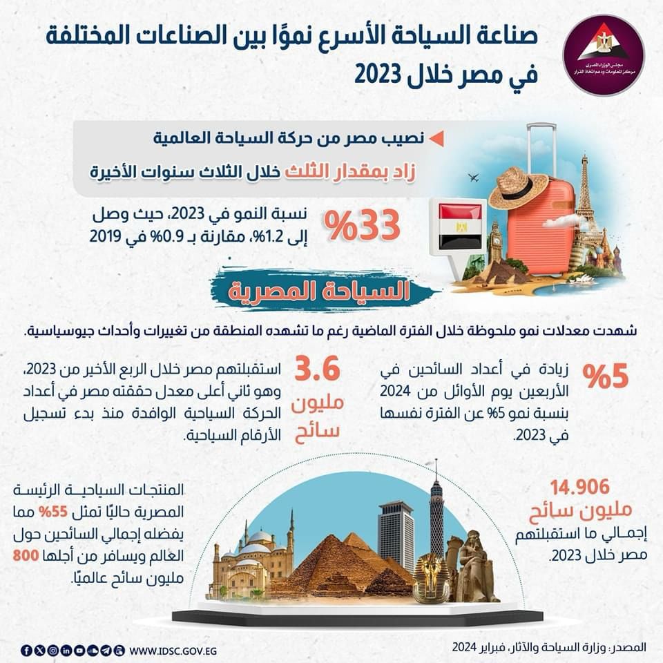 الحكومة: ارتفاع نصيب مصر من حركة السياحة العالمية بمقدار الثلث (إنفوجراف)