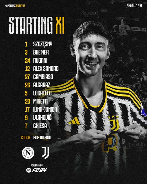 أعلن ماسيميليانو أليجري المدير الفني لفريق يوفنتوس عن التشكيل الرسمي الذي سيخوض به لقاء الليلة أمام نابولي في الدوري الإيطالي لكرة القدم موسم 2023-2024.