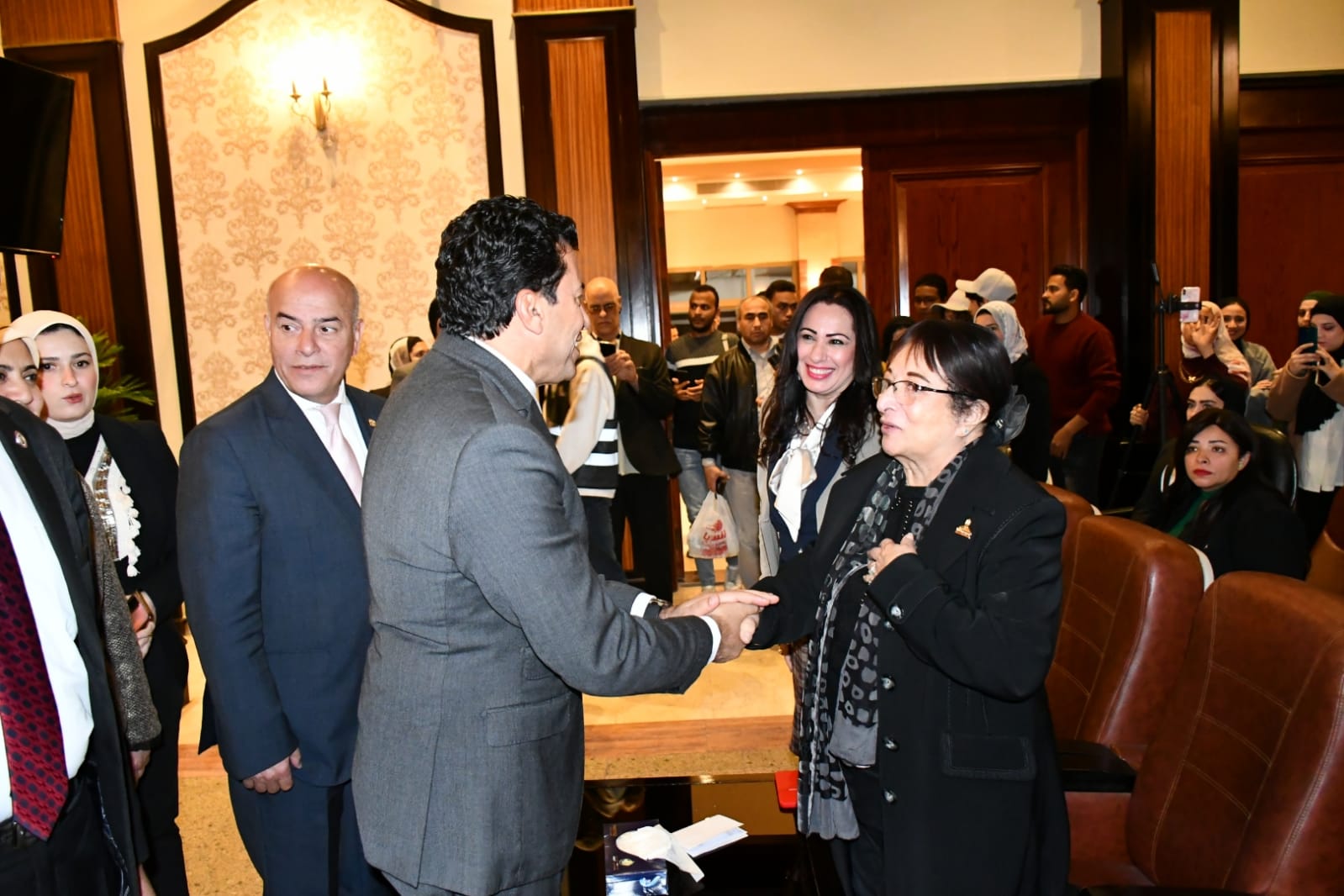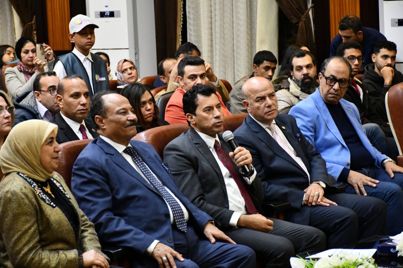 وفي كلمته اكد اشرف صبحي وزير الشباب والرياضة الدولة المصرية توفير الرعاية والبيئة والسياسات الداعمة لحقوق الشباب والنشء وهما الأساس لأسرة متماسكة تحظى بحياة كريمة، ومجتمع سوي قادر على الإنتاج والتقدم.