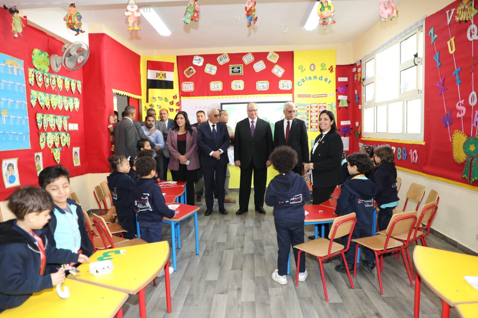 وقد تفقد الوزير والمحافظ عددًا من الفصول وحجرات الأنشطة بالمدرسة، كما تبادلا الحوار مع الطلاب والمعلمين للاطمئنان على تطبيق قواعد ولوائح وأنشطة المدرسة.