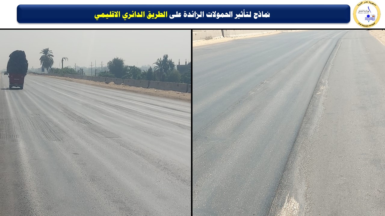 وتناشد وزارة النقل السادة اصحاب شركات النقل وسائقي الشاحنات بضرورة الالتزام بالحمولات المسموح السير بها على شبكة الطرق والكباري المصرية الواردة في القرار الوزاري المعدل ولائحته التنفيذية للحفاظ على الاستثمارات الهائلة التى تم إنفاقها على تطوير شبكة الطرق والكباري وتقليل الحوادث على الطرق والمحافظة على الارواح وعدم التأثير على حجم الصادرات المصرية الى ليبيا والسودان والاردن والعراق ودول الخليج.