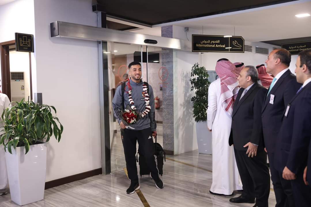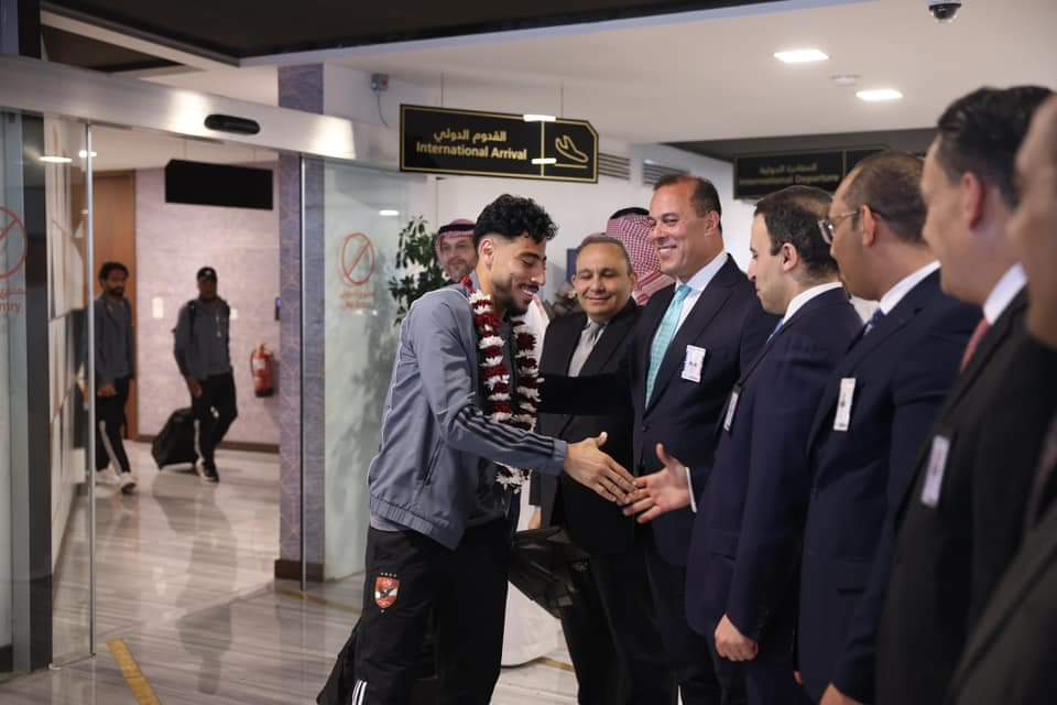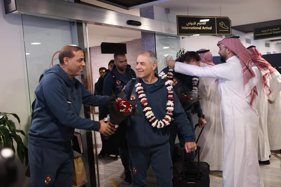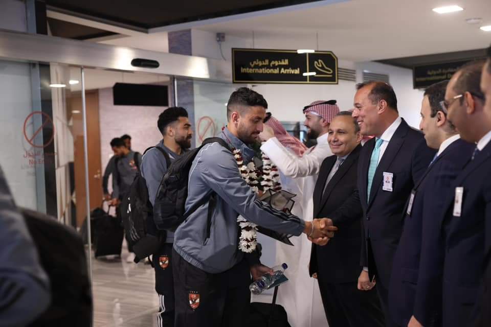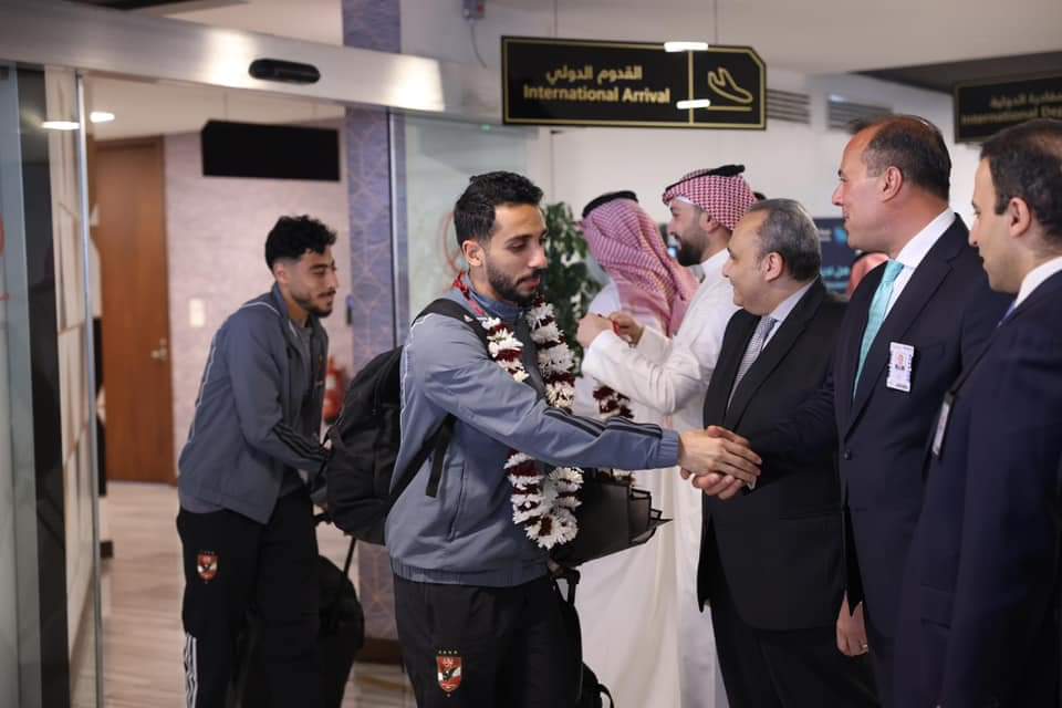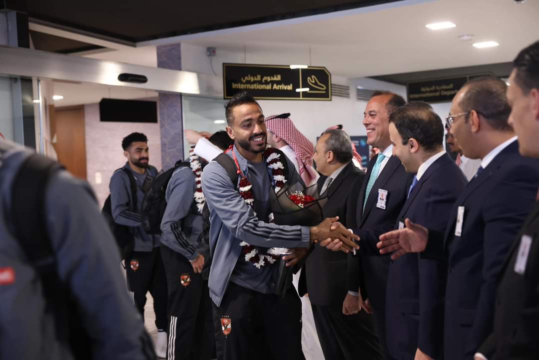 وصول بعثة الأهلي للسعودية استعداداً لنهائي كأس مصر واستقبال بالورود