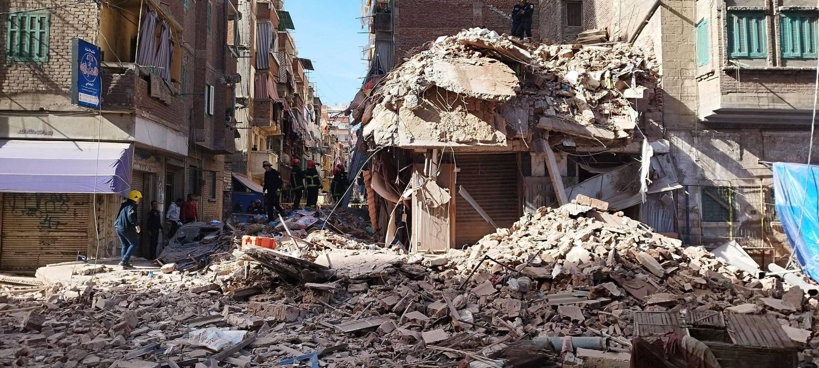تلقت اخطارا من شرطه النجده يفيد بانهيار عقار مكون 4 طوابق ادى لمصرع 4 أشخاص وأصابة شخصين .