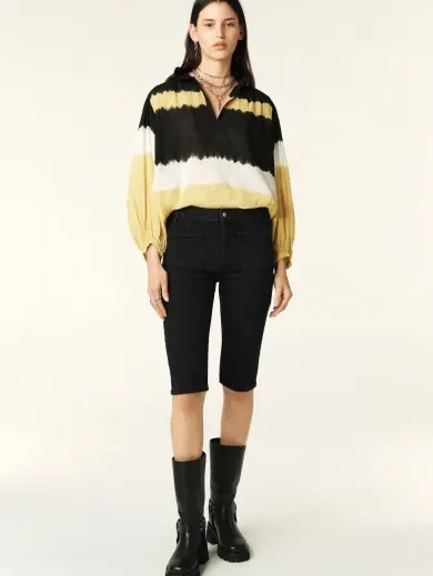 ويمكن تنسيق شورت جينز مع جاكت جينز للحصول على إطلالة الدنيم الكاملة الرائجة بقوة هذا الموسم.