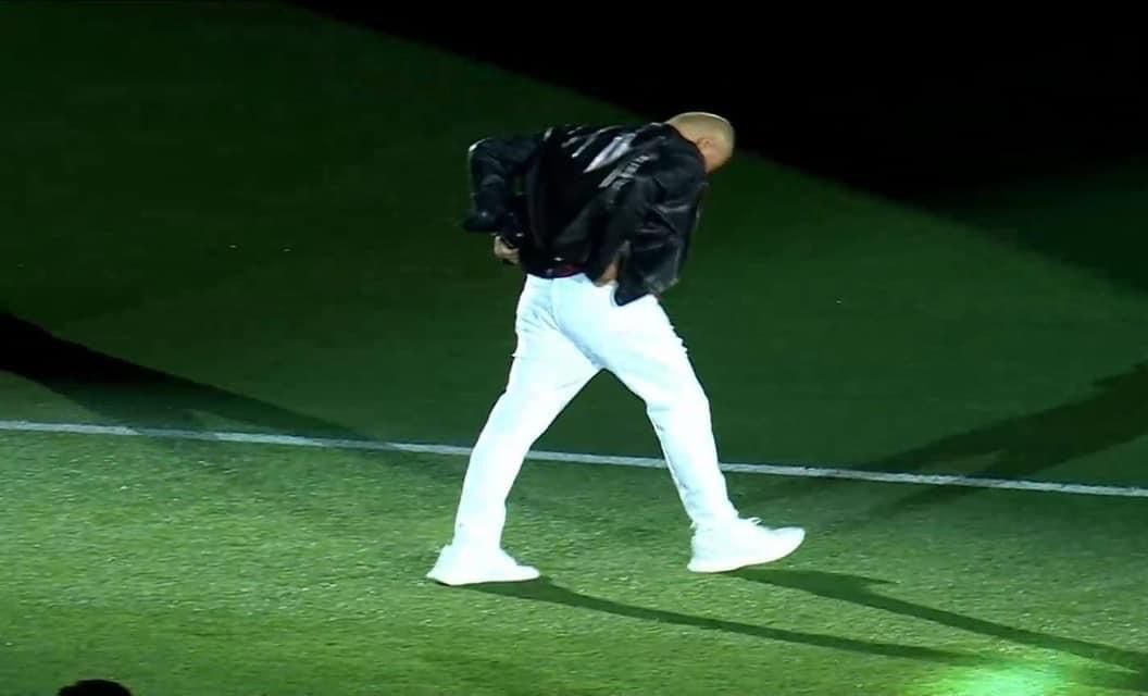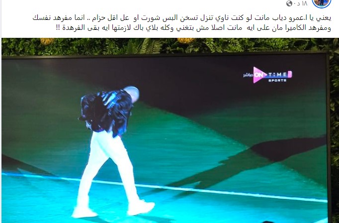رفع عمرو دياب البنظلون خلال الغناء داخل أرضية الملعب ، فتصدرت التعليقات الساخرة ومنها “ عمرو دياب دخل يغنى ونسى حزام البنطلون فكان هيقع”.