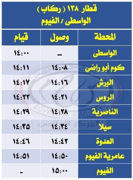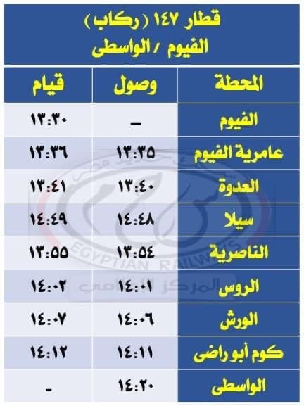 - تعديل ميعاد قطاري 147 و138 ركاب الفيوم - الواسطي والعكس كالجداول المرفقة.