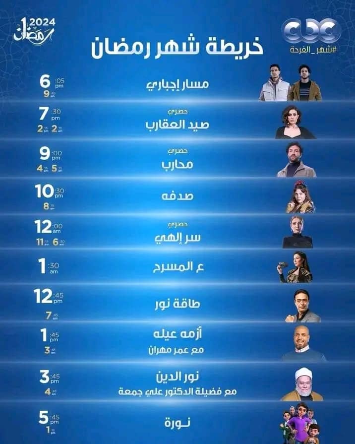 مسلسلات رمضان.. تستعد قناة سي بي سي هذا الموسم، لعرض مجموعة متميزة من الأعمال الدرامية، والتي يشارك في بطولتها، حيث أعلنت قناة cbc مواعيد المسلسلات التلفزيونية، التي تعرض عبر شاشتها خلال موسم رمضان 2024، وهي كالتالي: