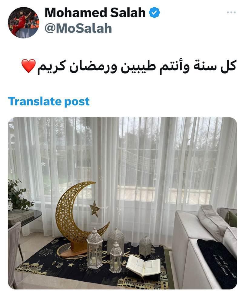 ونشر محمد صلاح عبر مواقع التواصل الاجتماعي الخاصة به: " كل سنة وانتو طيبين ورمضان كريم".