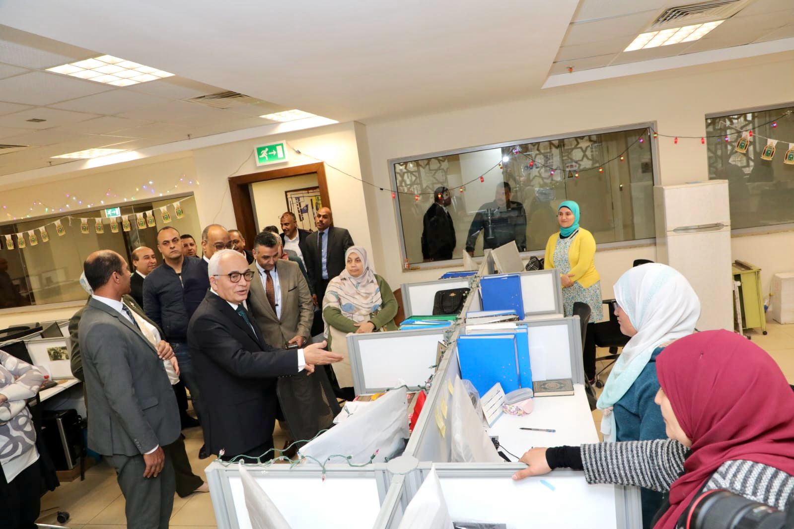 كما تفقد وزير التربية والتعليم مكاتب العاملين بديوان عام الوزارة، حيث تفقد مكاتب العاملين بإدارات الشئون المالية، والمخزون السلعى، والتعاقدات، والتطوير المؤسسي، ونظم المعلومات، وحصر الوظائف، موجهاً بتشكيل لجنة لتحديد أدوار واختصاصات بعض الإدارات لازالة أية معوقات والحفاظ على سير نظام العمل، فضلاً عن منع أي تداخل فى التخصصات.